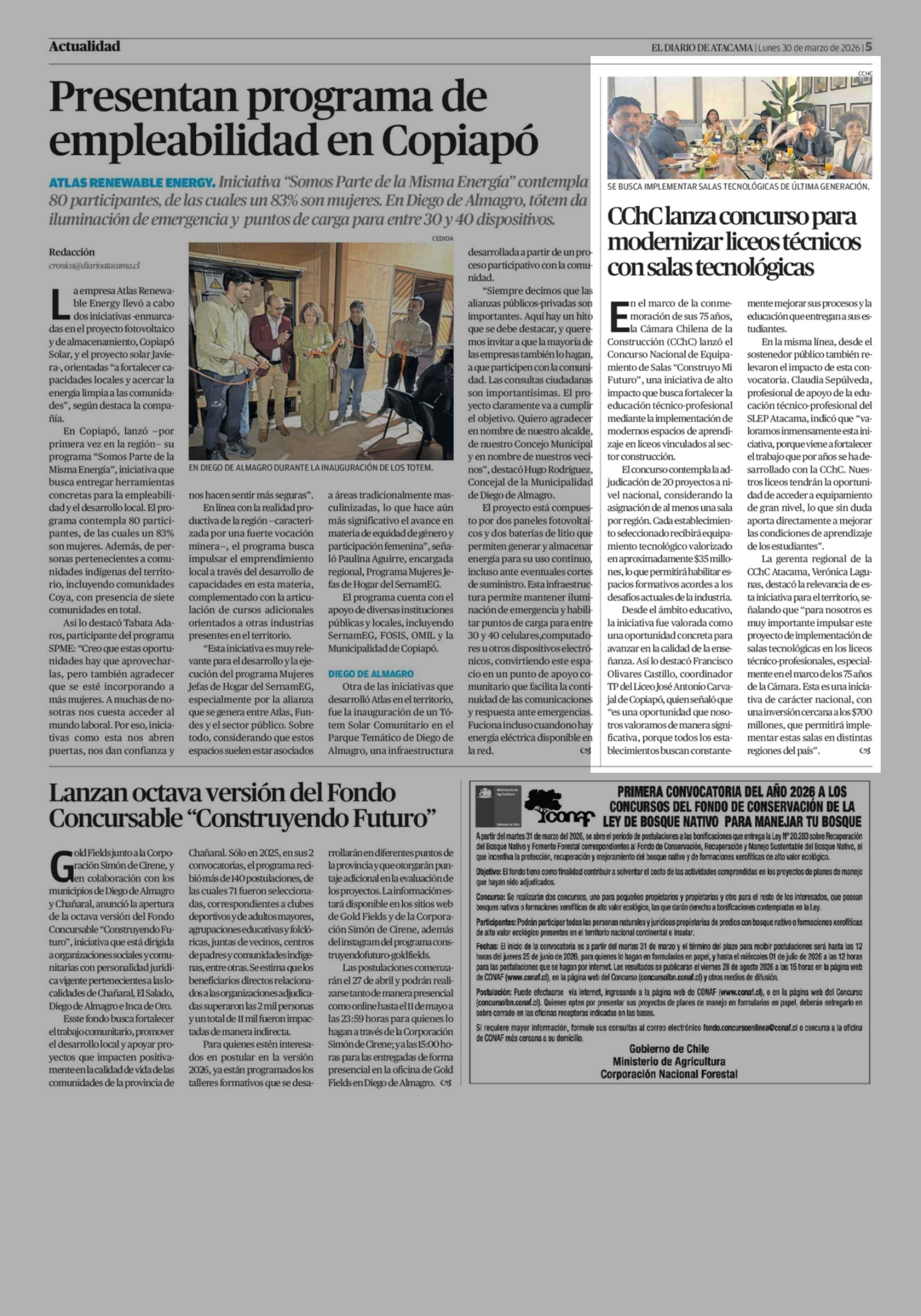 | Fecha: | 30-03-2026 | Sector: | Noticia general | Región: | Región de Atacama |