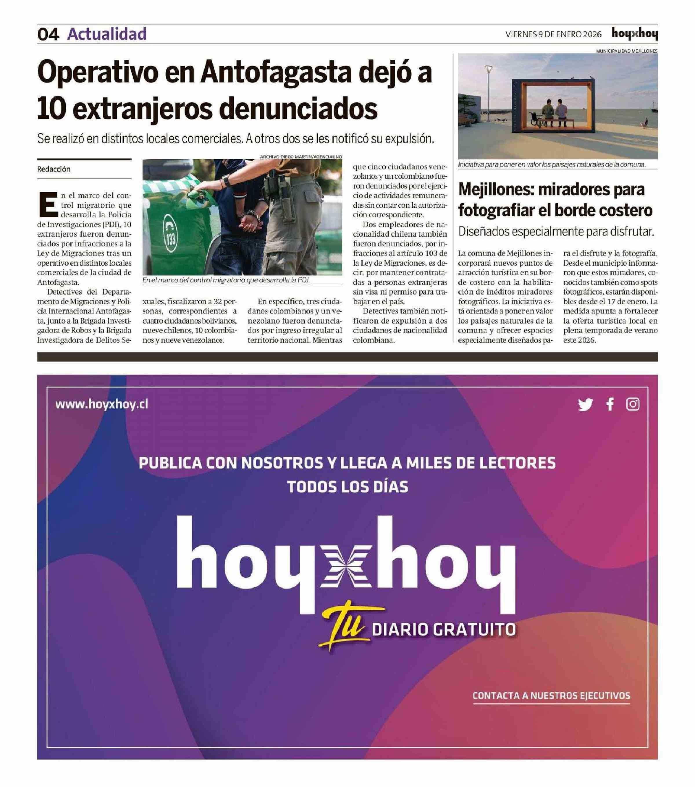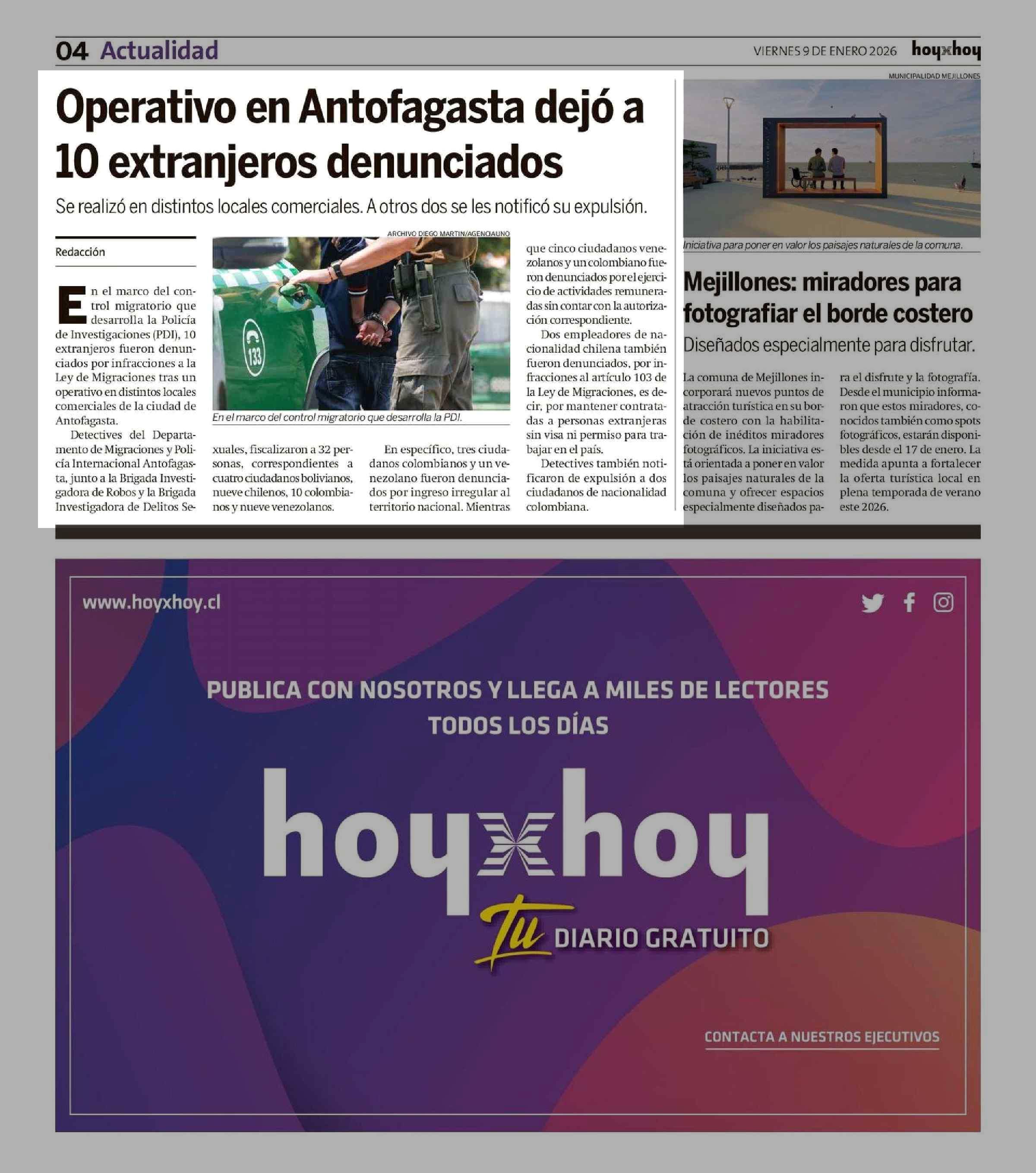 Operativo en Antofagasta dejó a 10 extranjeros denunciados 09-01-2026 Hoy x Hoy Antofagasta |