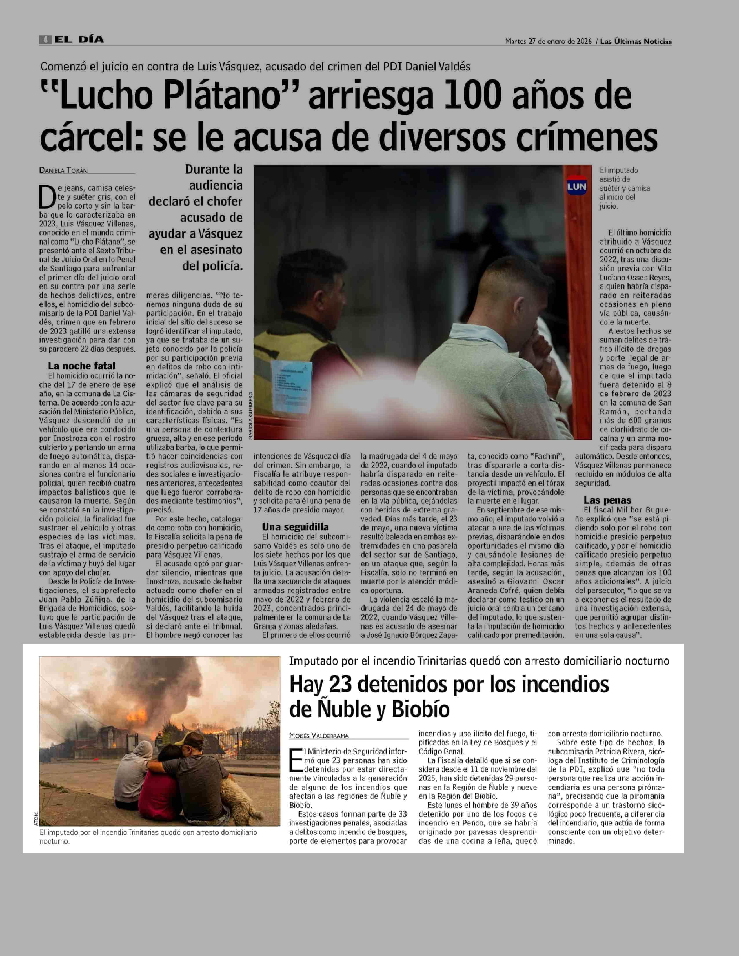 Hay 23 detenidos por los incendios de Ñuble y Biobio 27-01-2026 Las Últimas Noticias |