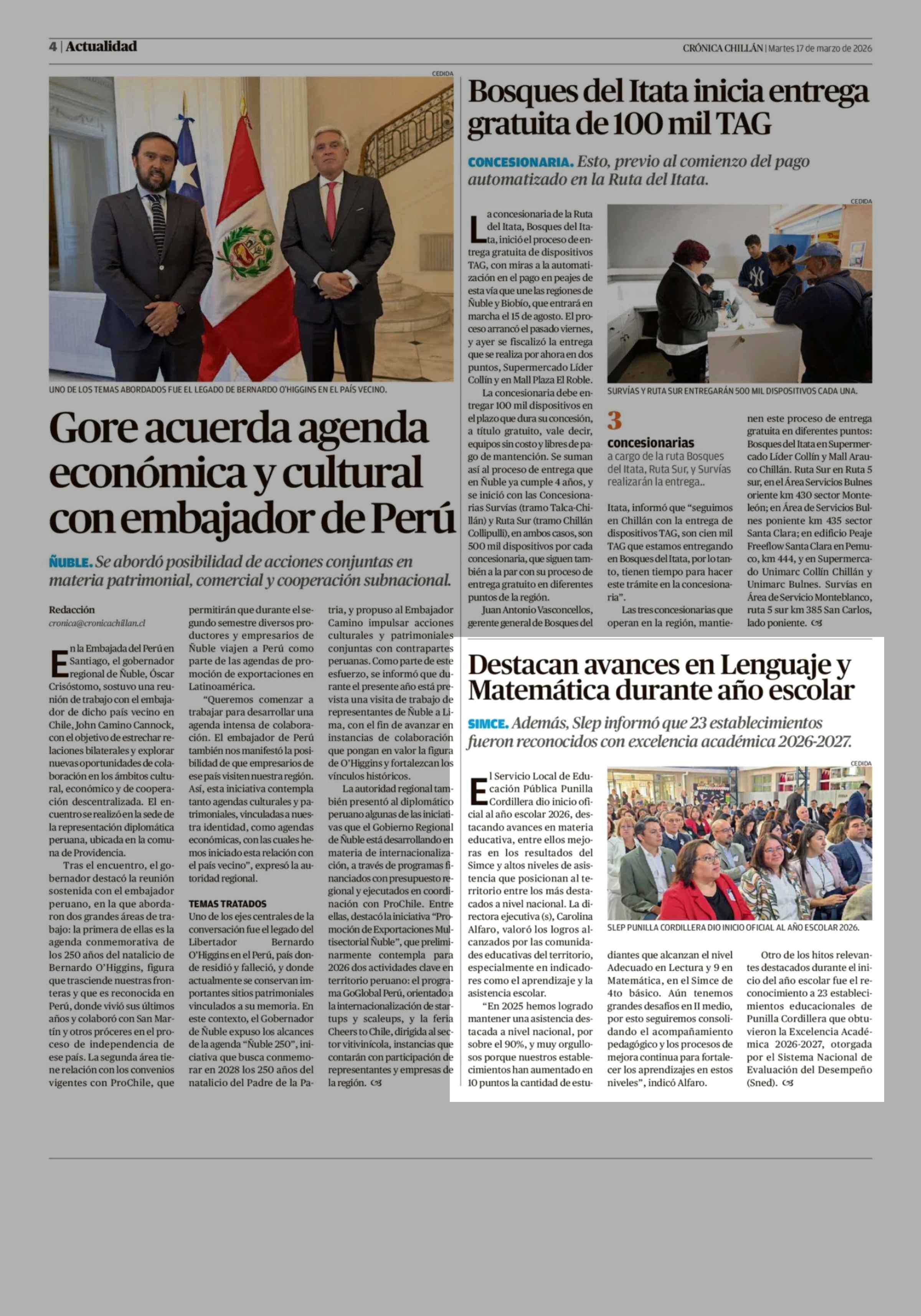 | Fecha: | 17-03-2026 | Sector: | Noticia general | Región: | Región del Ñuble |