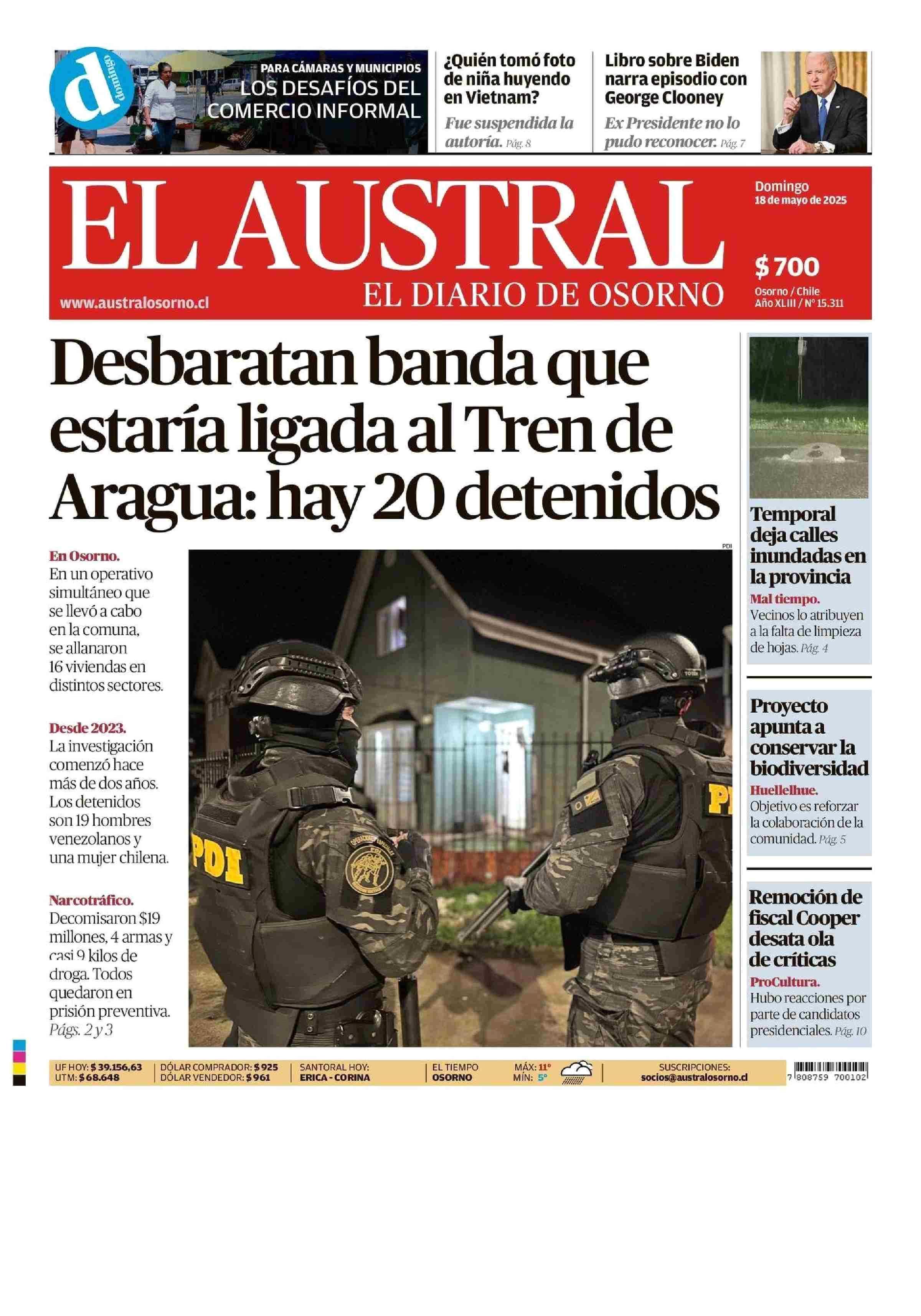 PORTADA EL AUSTRAL DE OSORNO CHILE 18-05-2025 El Austral de Osorno |