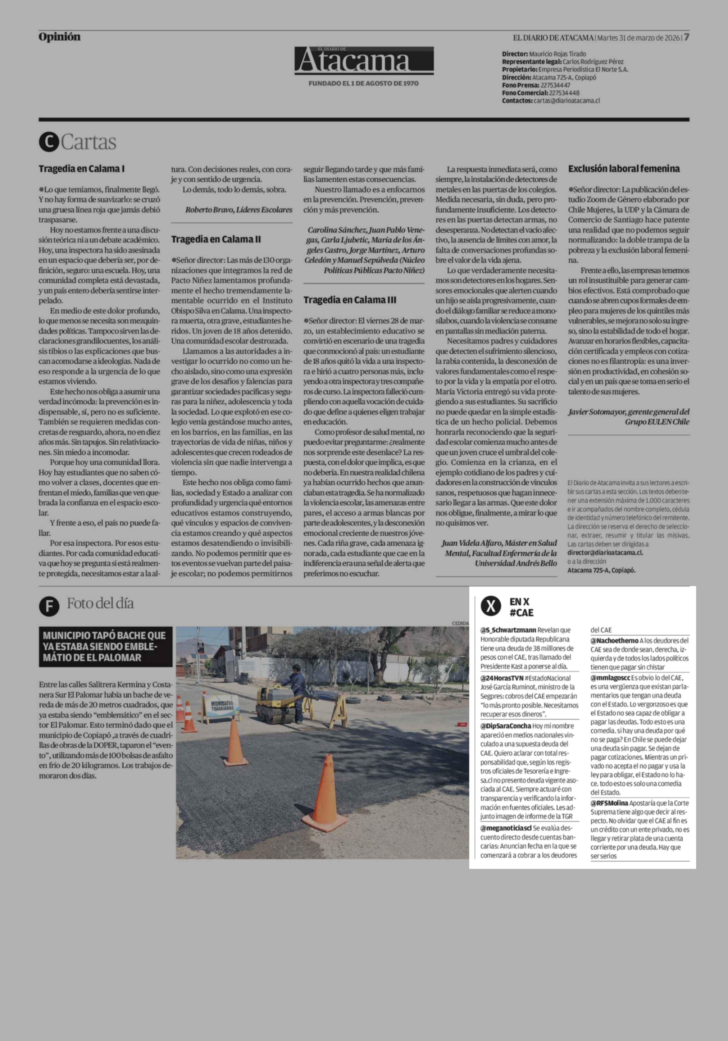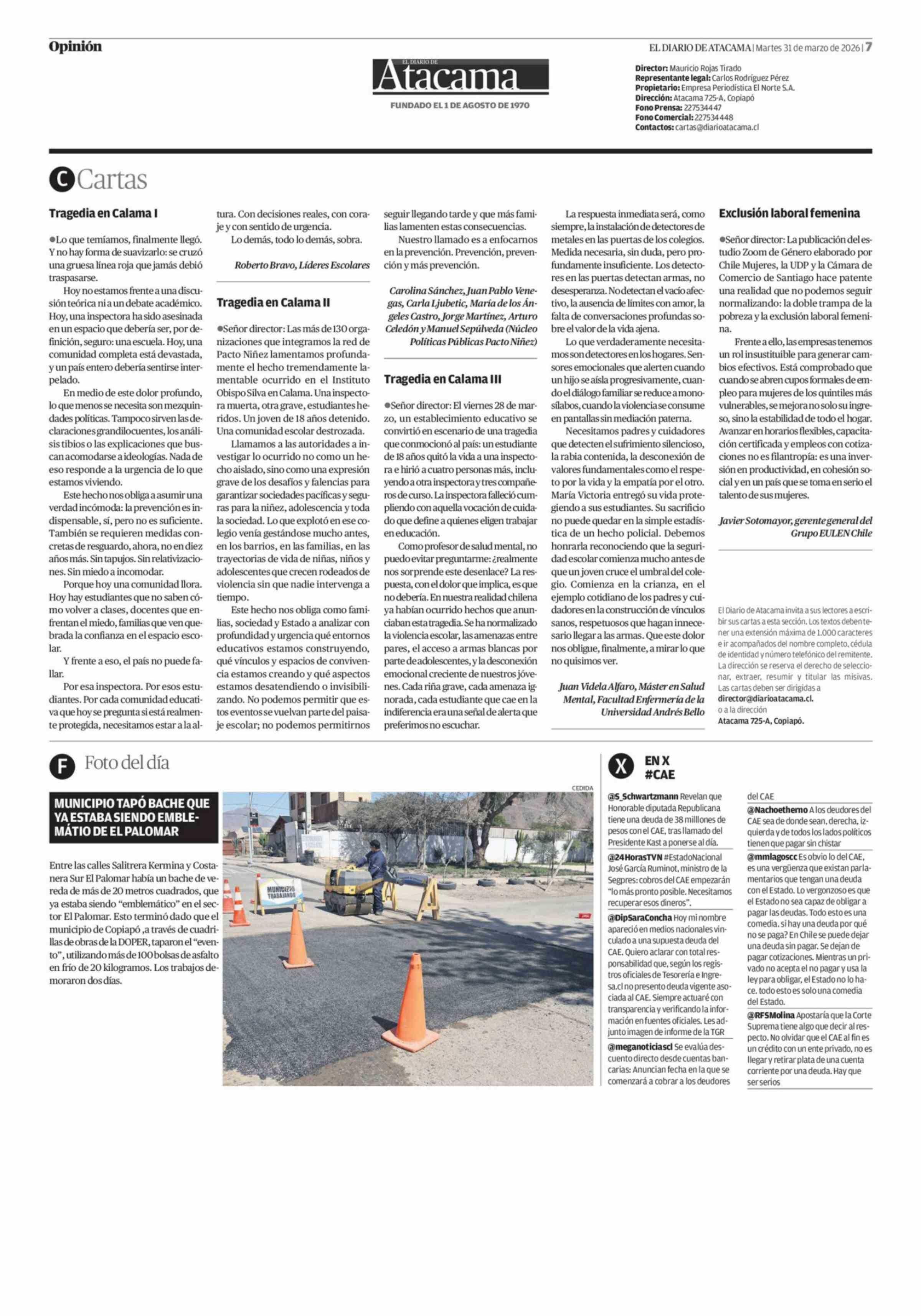 Fuente: El Diario de Atacama (El Diario de Atacama) Página(s): 7