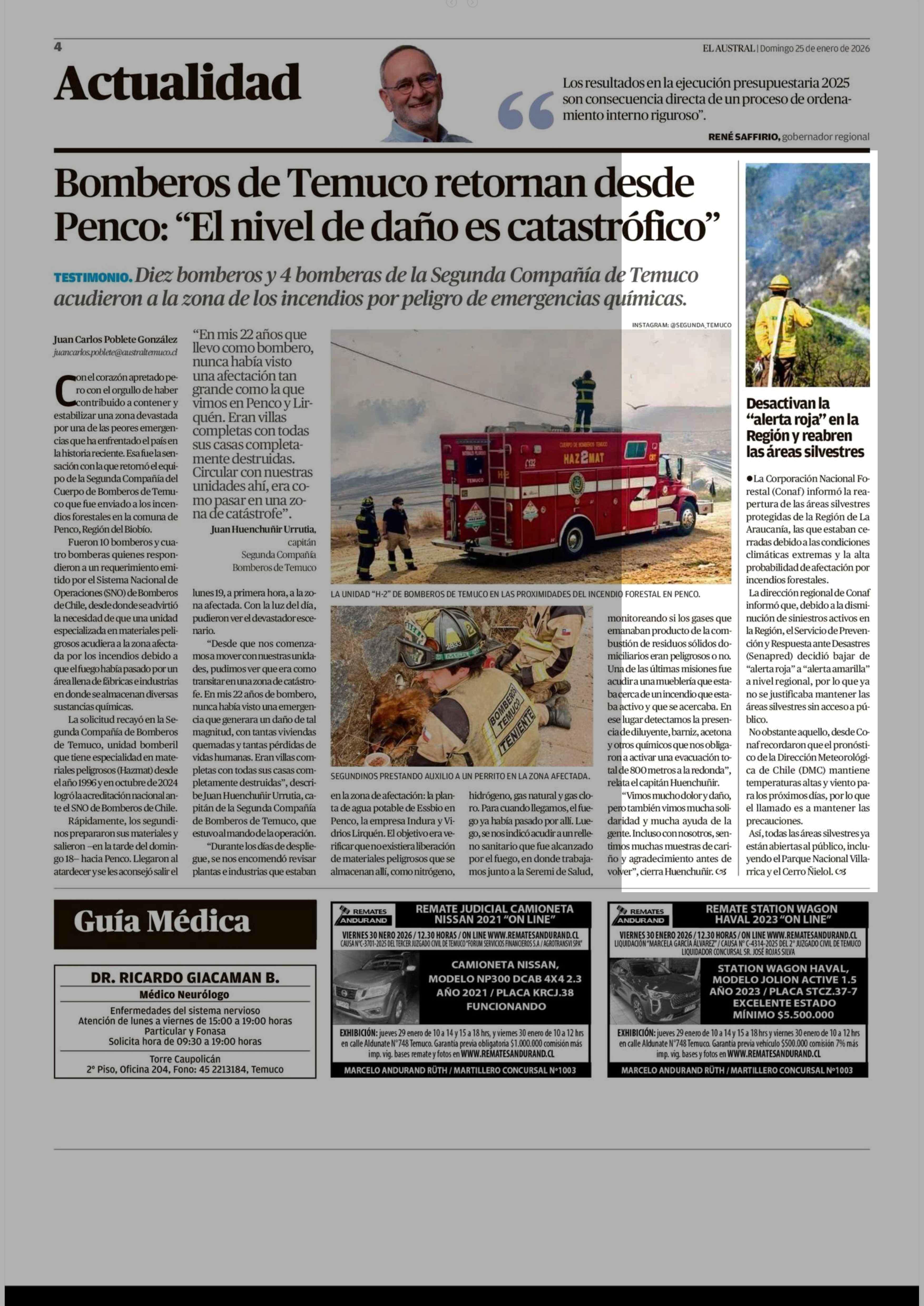 | Fecha: | 25-01-2026 | Sector: | Noticia general | Región: | Región de la Araucanía |