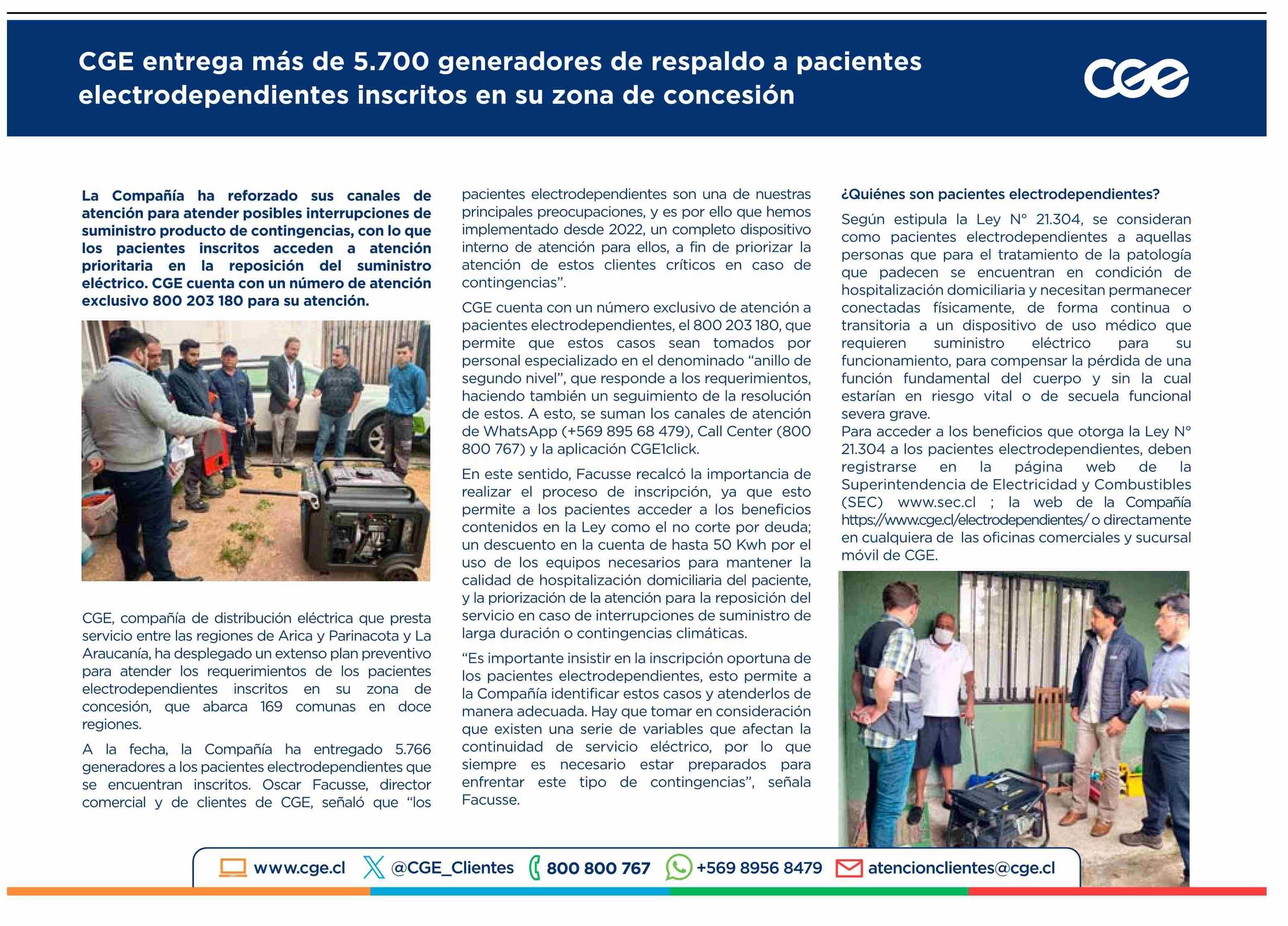 Título: CGE entrega más de 5.700 generadores de respaldo a pacientes electrodependientes inscritos en su zona de concesión