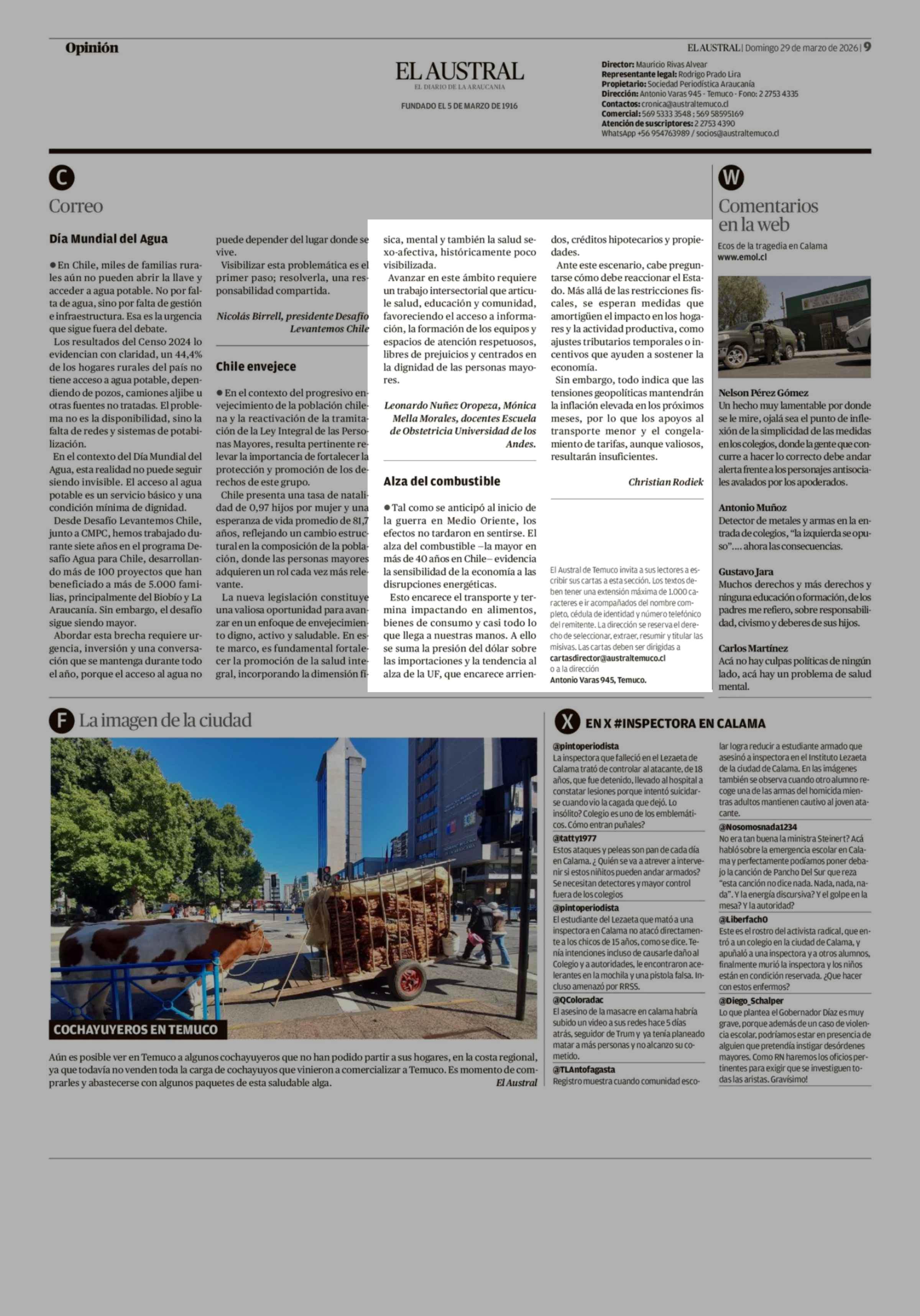 Fecha: 29-03-2026 Sector: Cartas Región: Región de la Araucanía