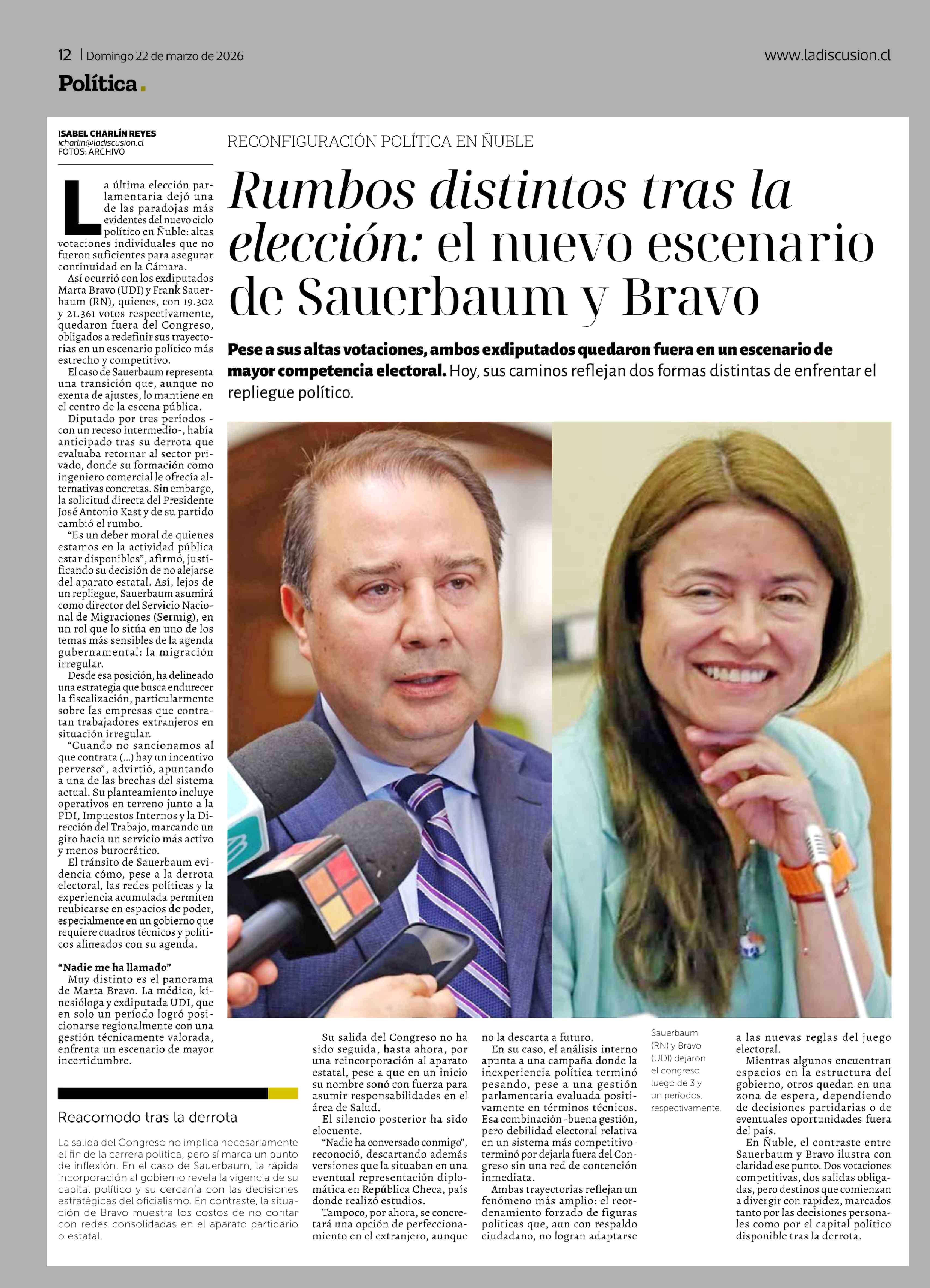 Título: Rumbos distintos tras la elección: el nuevo escenario de Sauerbaum y Bravo