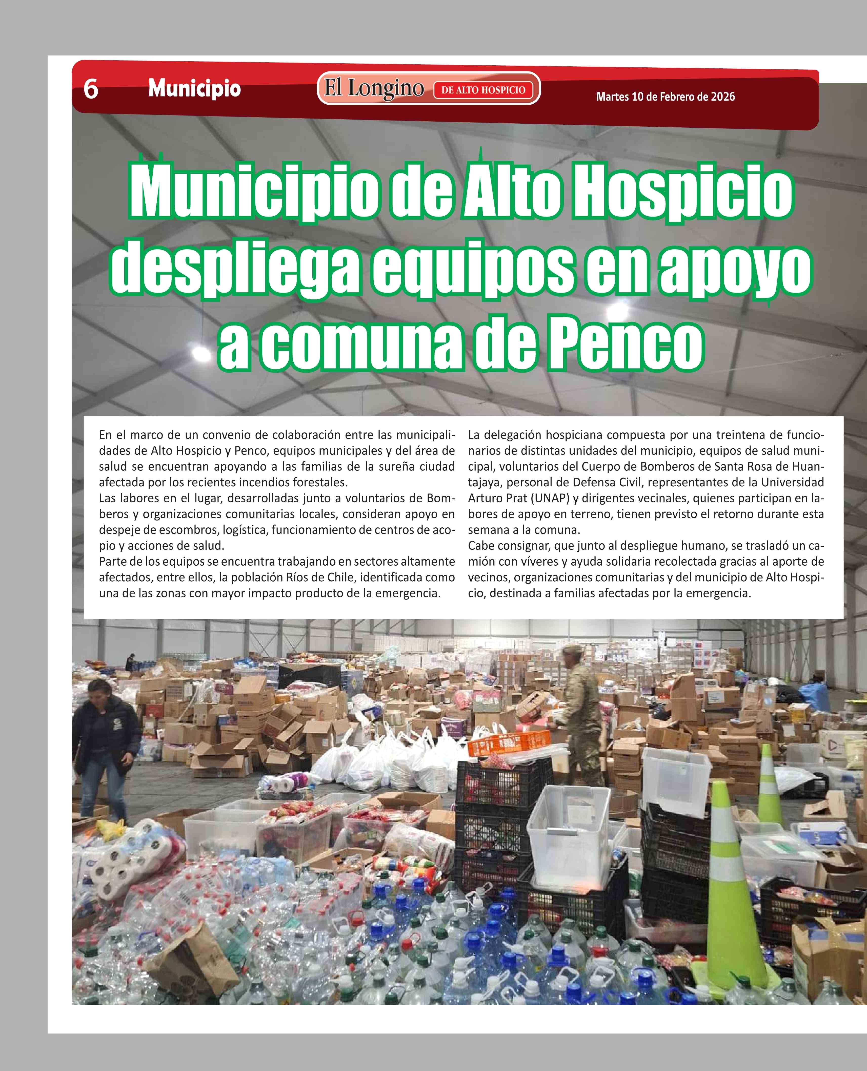 Título: Municipio de Alto Hospicio despliega equipos en apoyo a comuna de Penco
