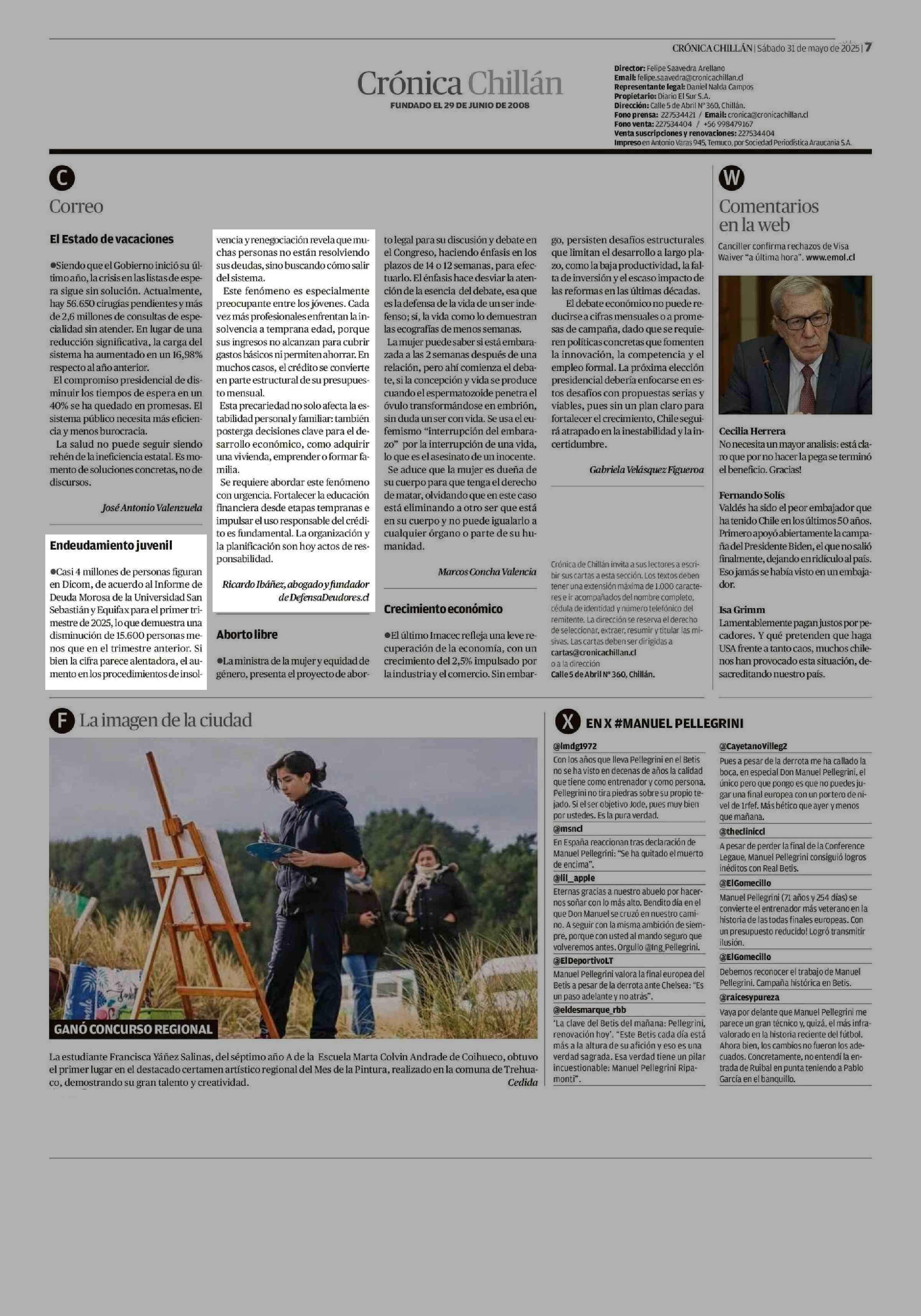 | Fecha: | 31-05-2025 | Sector: | Opinión - Cartas | Región: | Región del Ñuble |