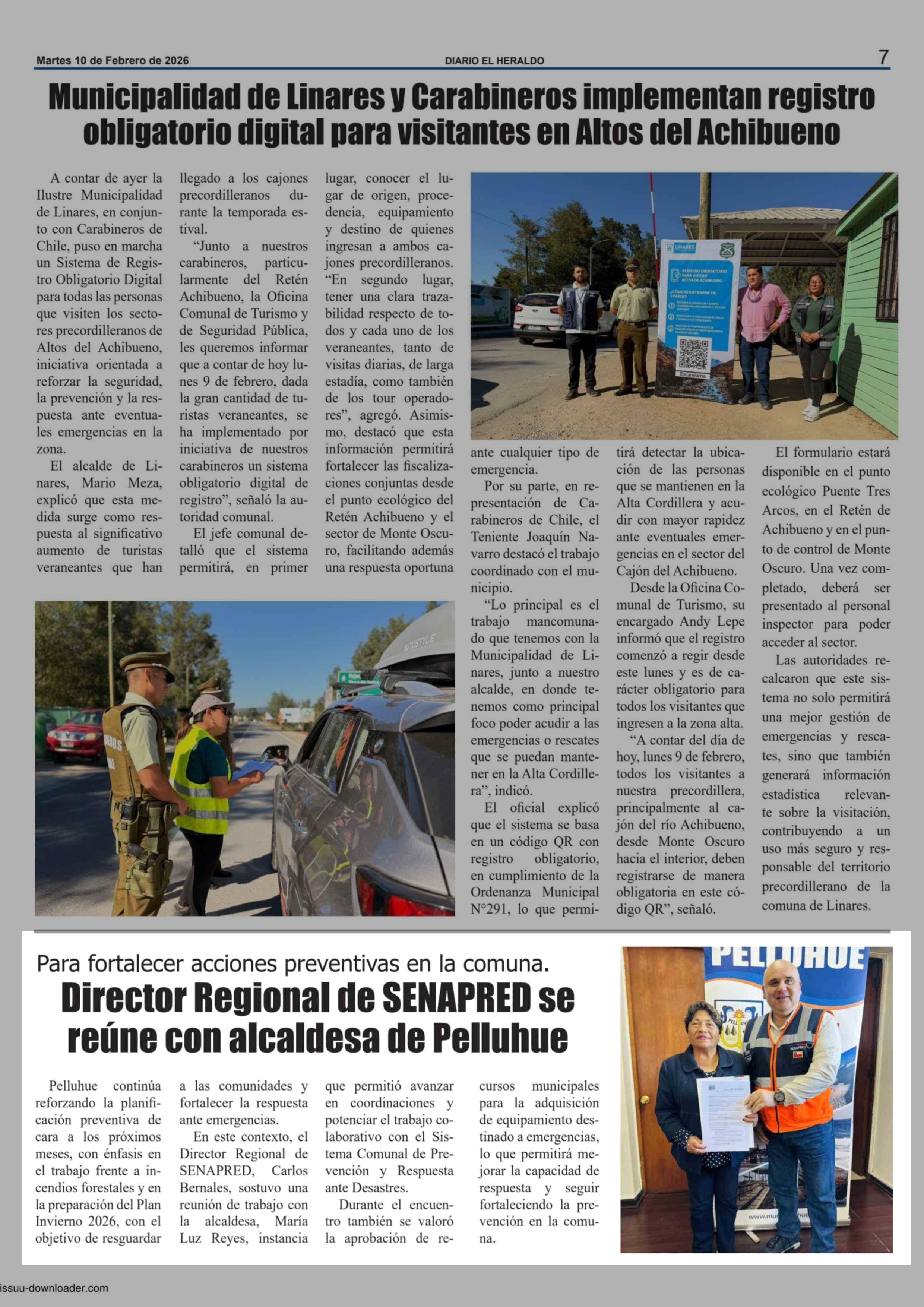 Director Regional de SENAPRED se reúne con alcaldesa de Pelluhue 10-02-2026 El Heraldo |