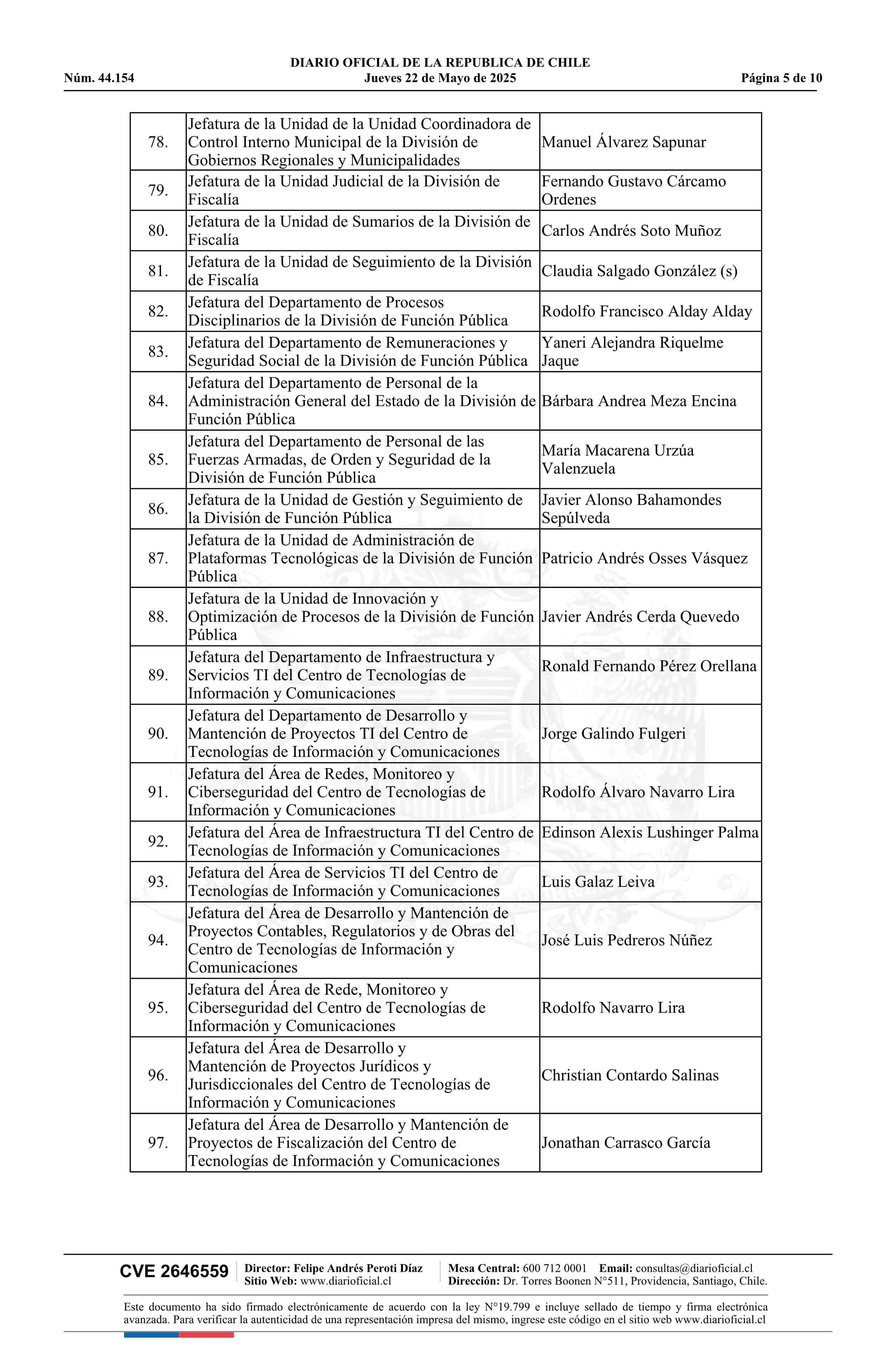 | Título: | Resolución exenta número E9705, de 2025.- Establece personal que tendrá la calidad de sujeto pasivo para los efectos de la ley Nº 20.730 |
