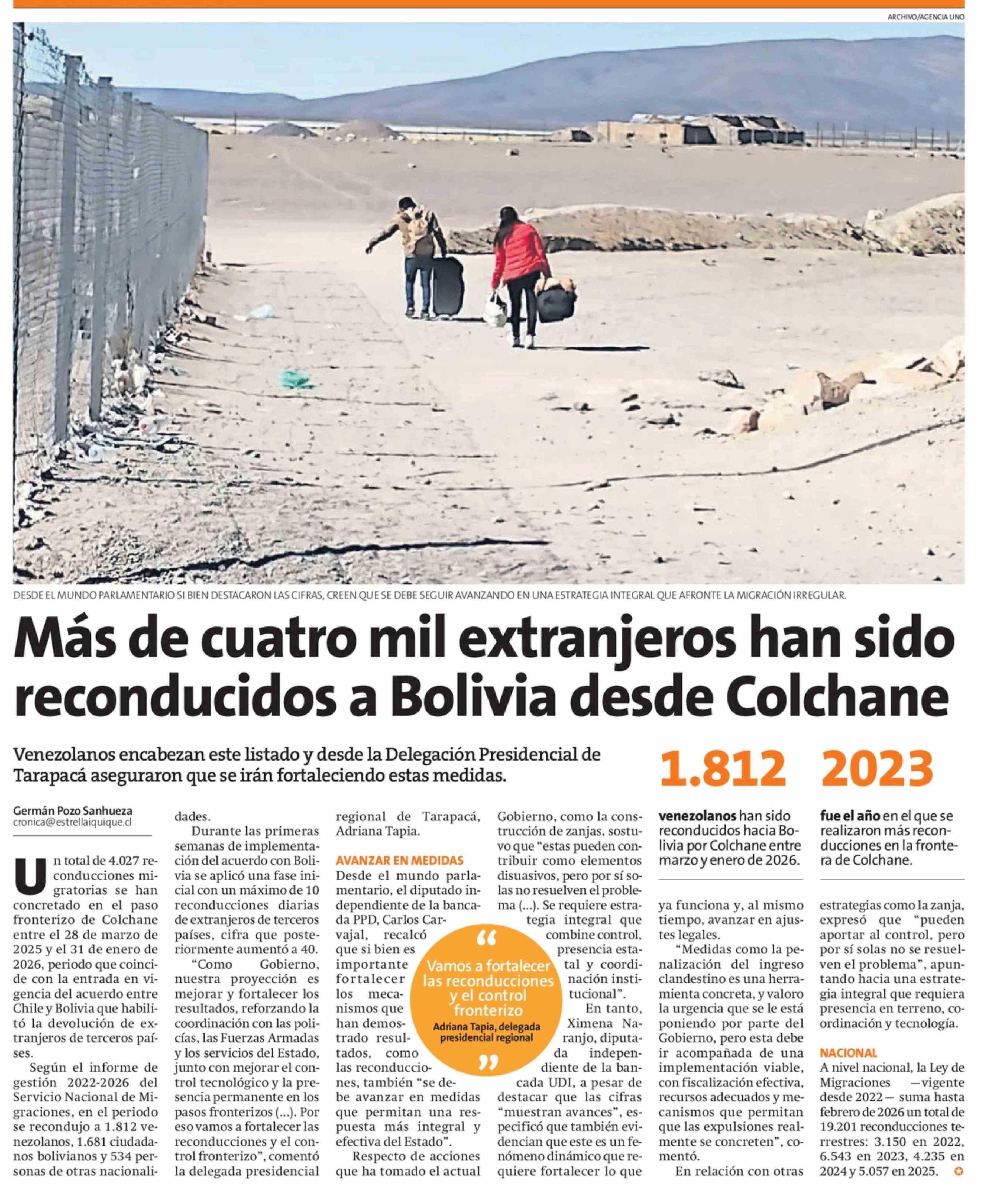 Más de cuatro mil extranjeros han sido reconducidos a Bolivia desde Colchane 24-03-2026 La Estrella de Iquique |