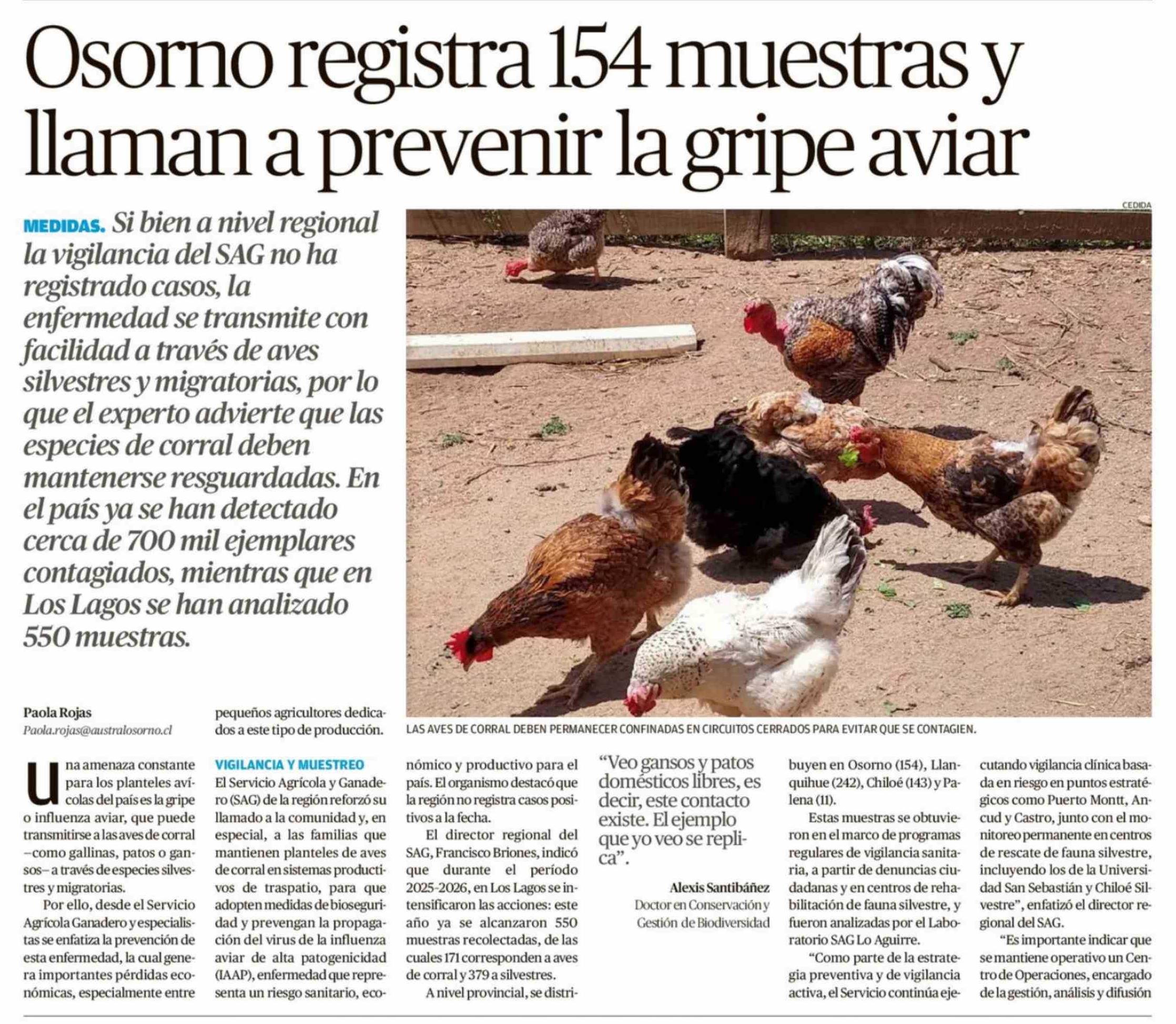 Título: Osorno registra 154 muestras y llaman a prevenir la gripe aviar