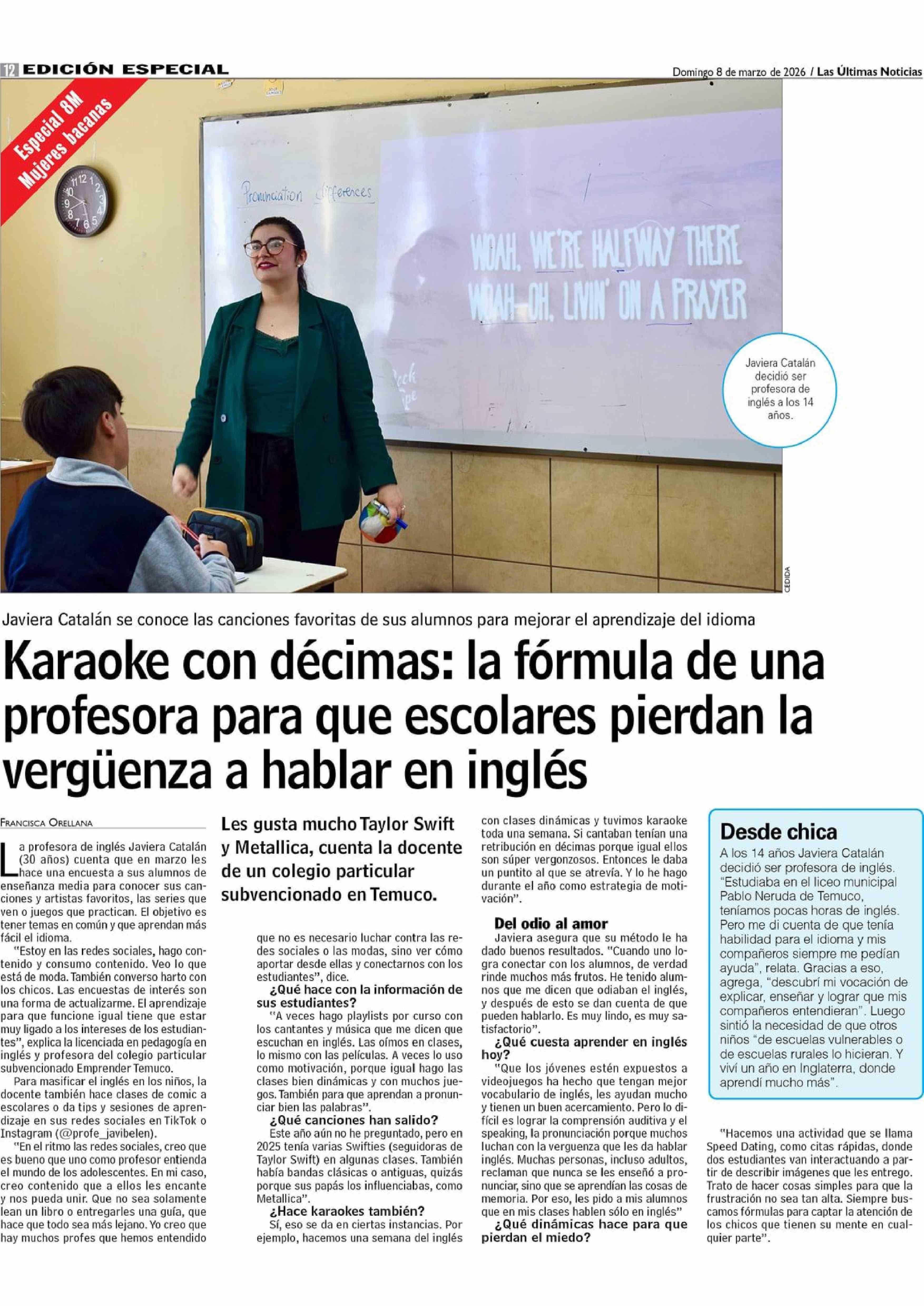 Karaoke con décimas: la fórmula de una profesora para que escolares pierdan la vergüenza a hablar en inglés 08-03-2026 Las Últimas Noticias |