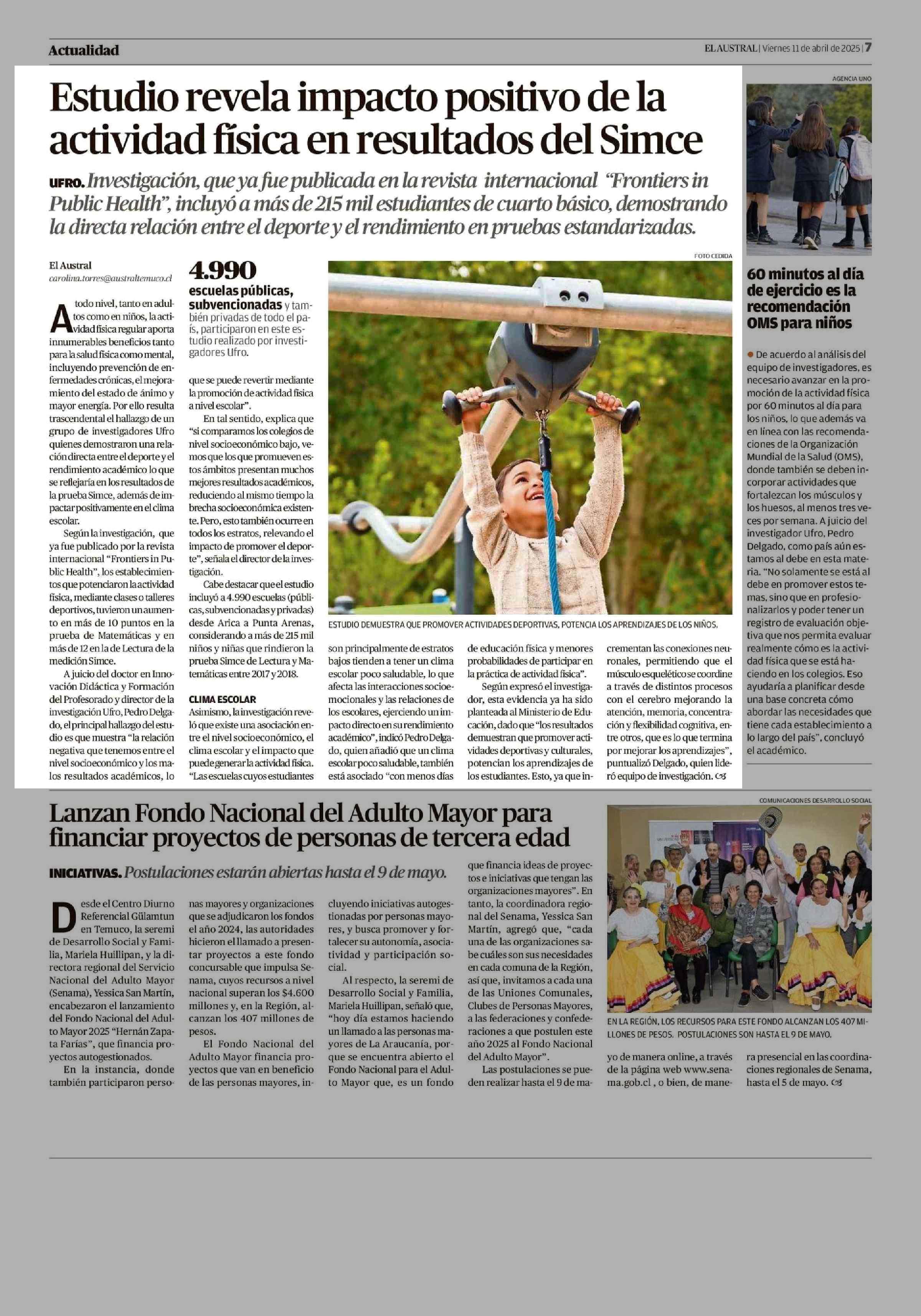 Estudio revela impacto positivo de la actividad física en resultados del Simce 11-04-2025 El Austral de la Araucanía |