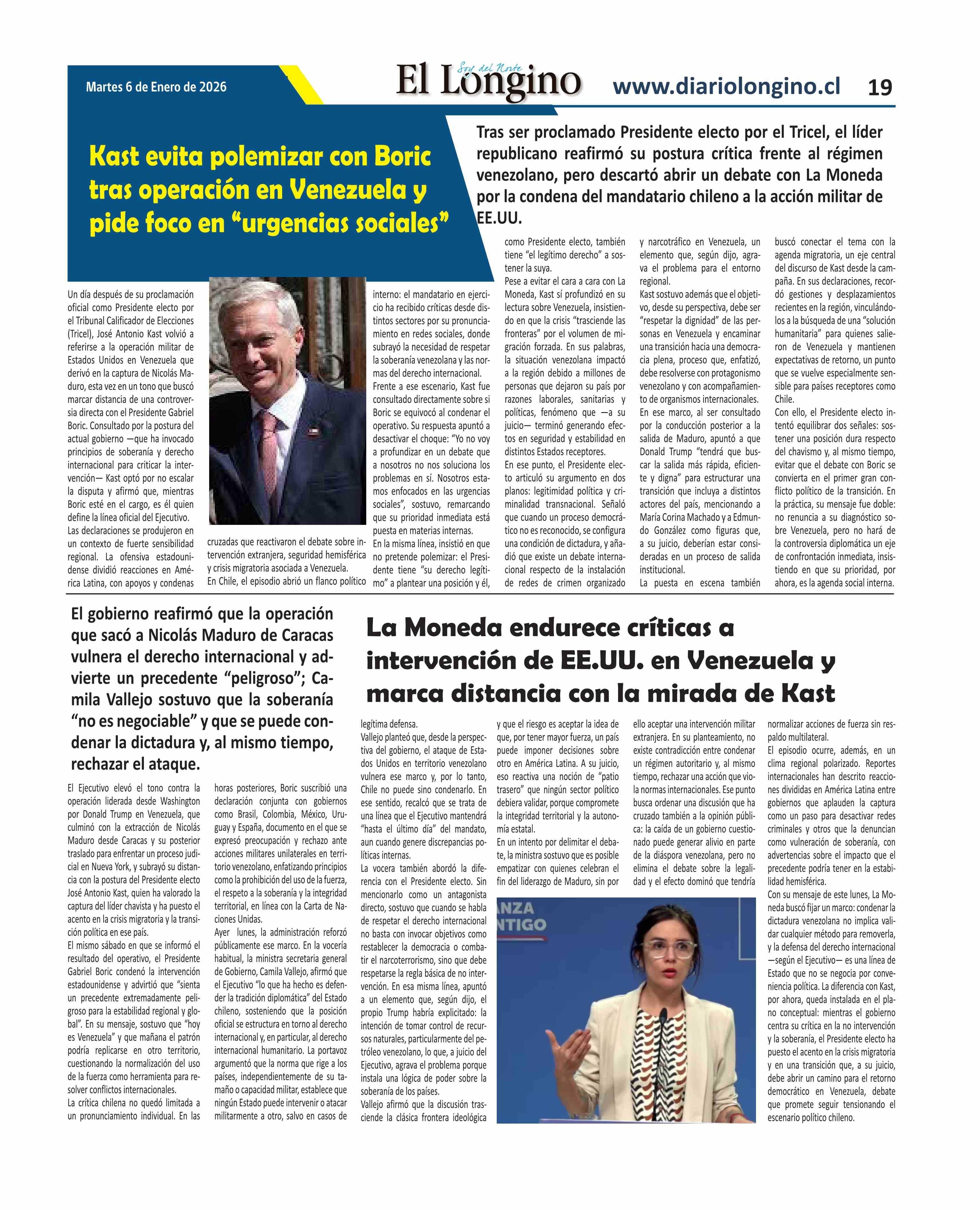 Título: La Moneda endurece críticas a intervención de EE.UU. en Venezuela y marca distancia con la mirada de Kast