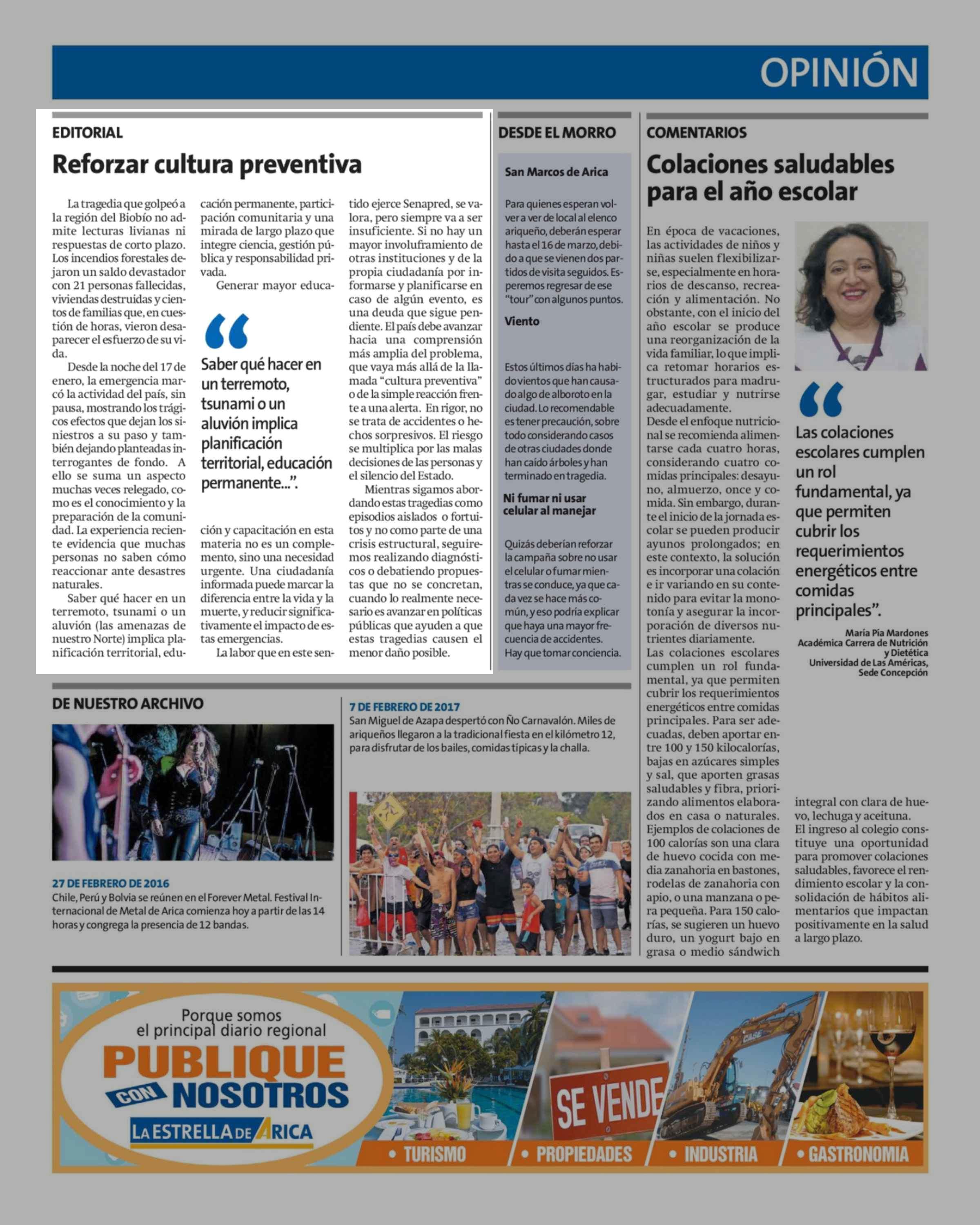 Editorial: Reforzar cultura preventiva 27-02-2026 La Estrella de Arica |