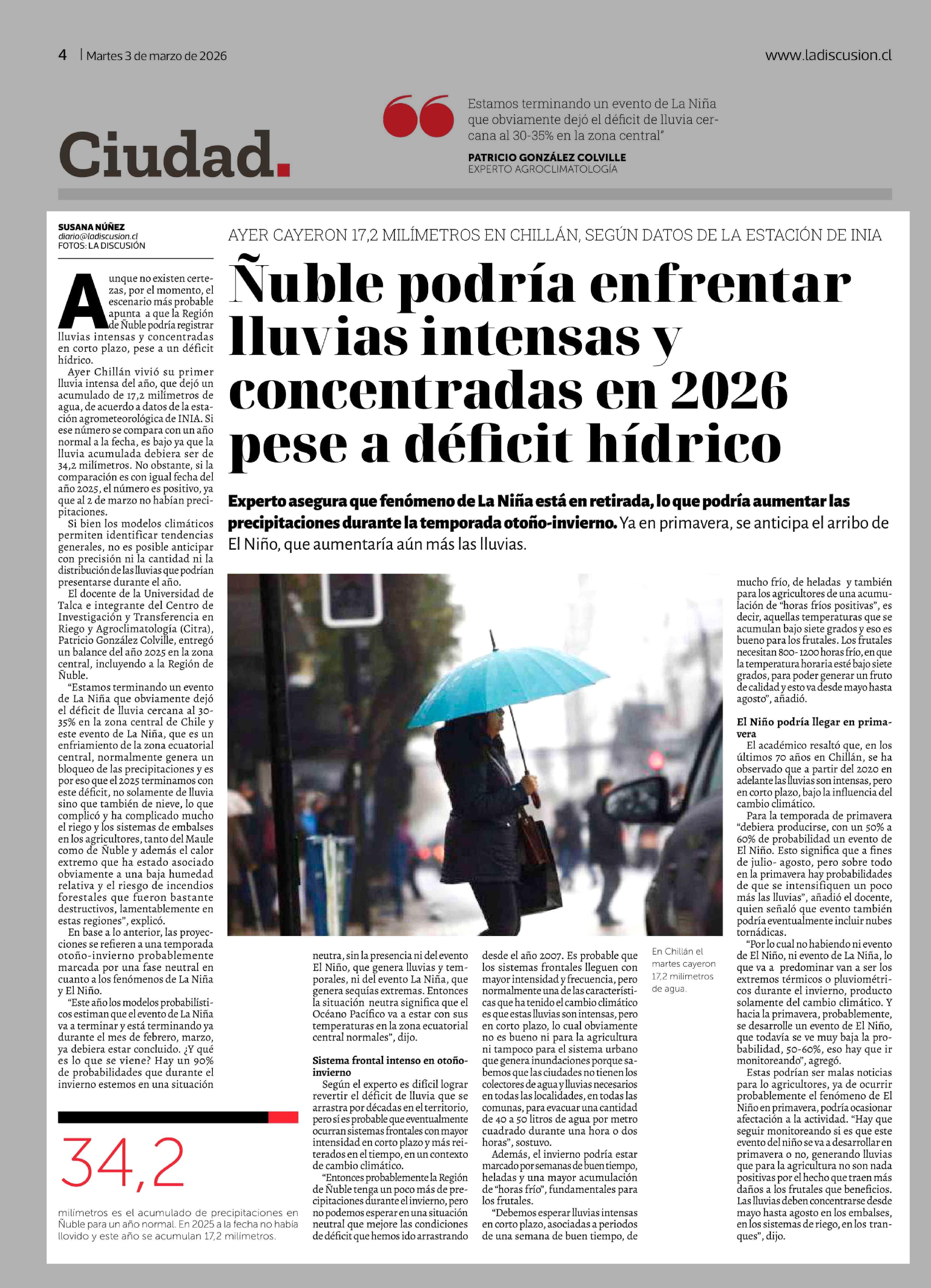 | Fecha: | 03-03-2026 | Sector: | Noticia general | Región: | Región del Ñuble |