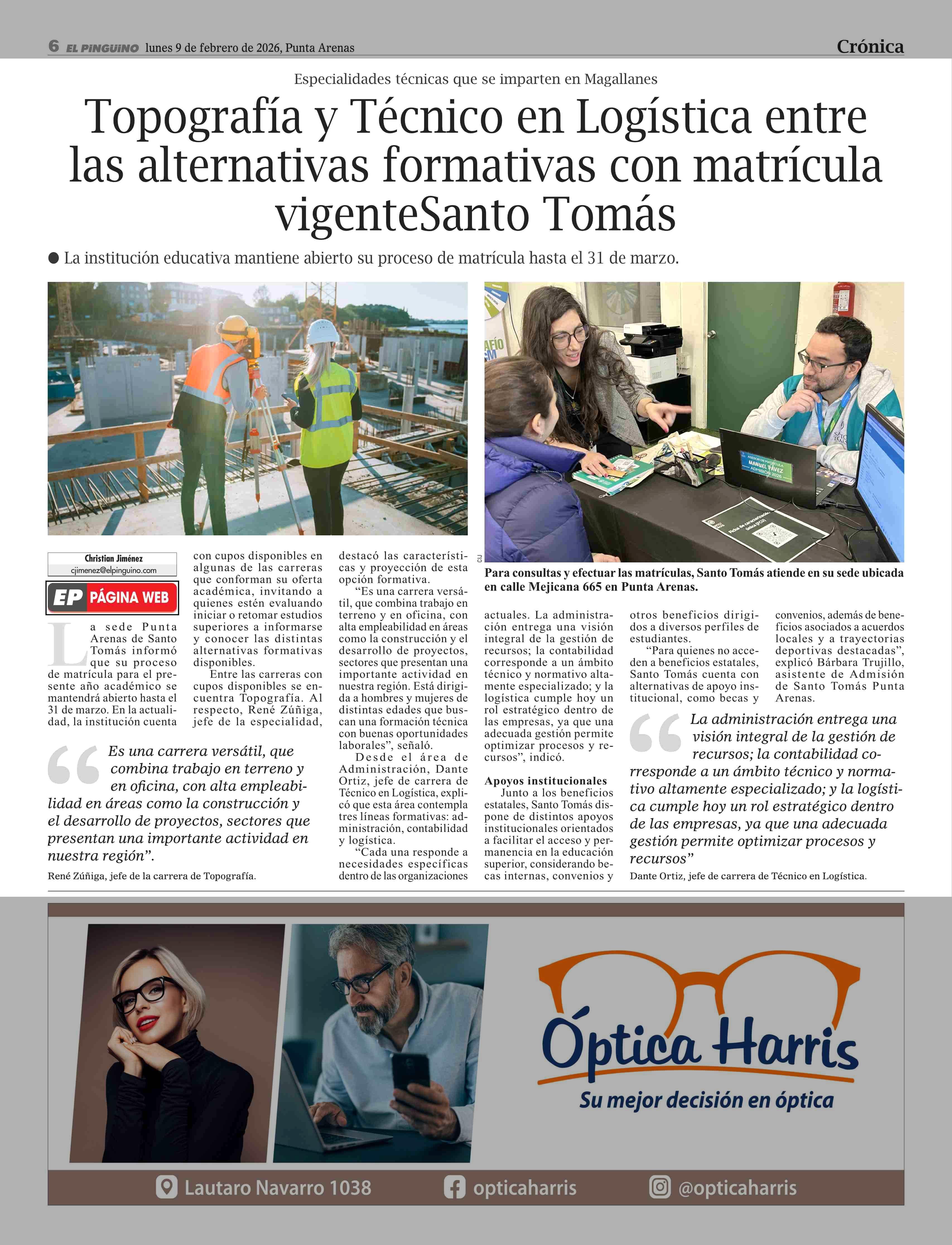 Topografía y Técnico en Logística entre las alternativas formativas con matrícula vigenteSanto Tomás