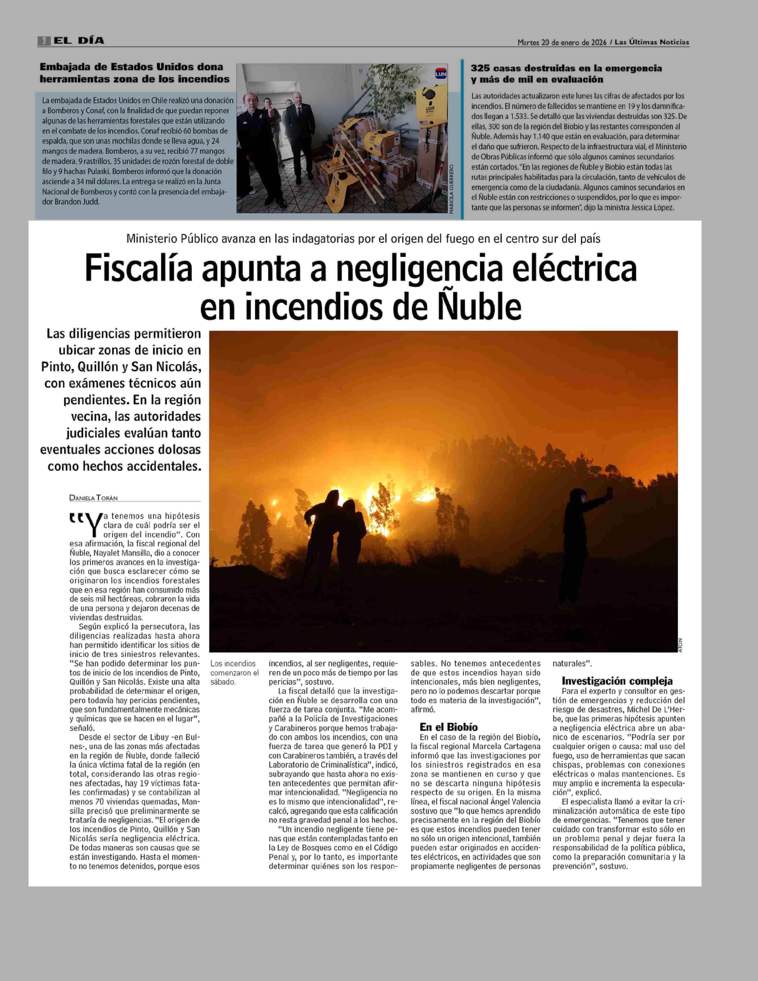 Título: Fiscalía apunta a negligencia eléctrica en incendios de Nuble