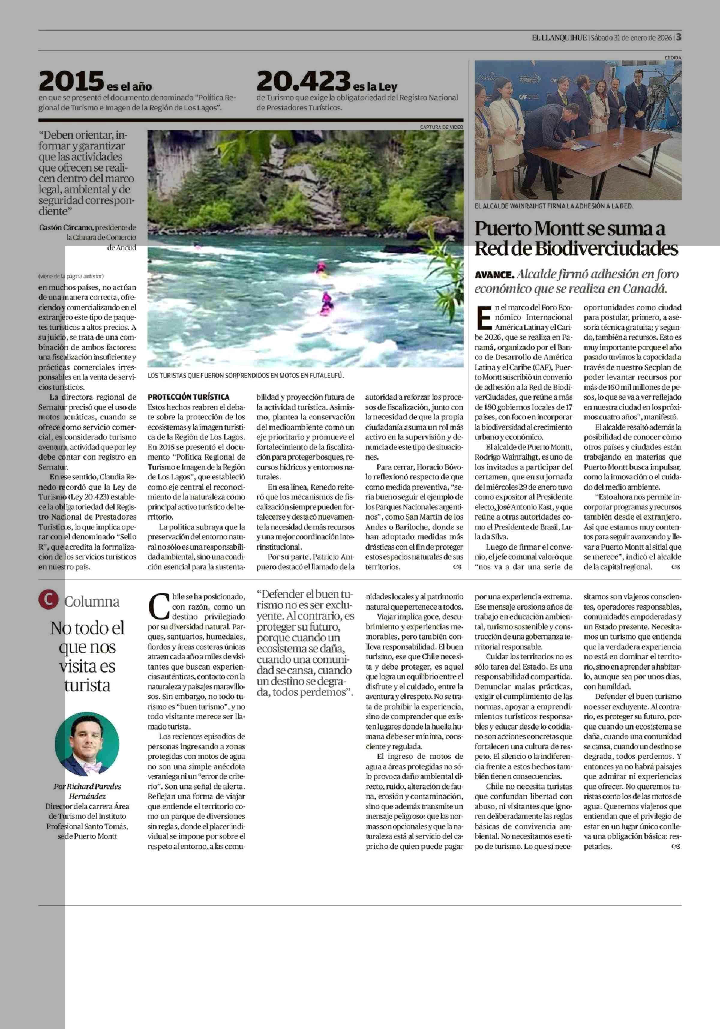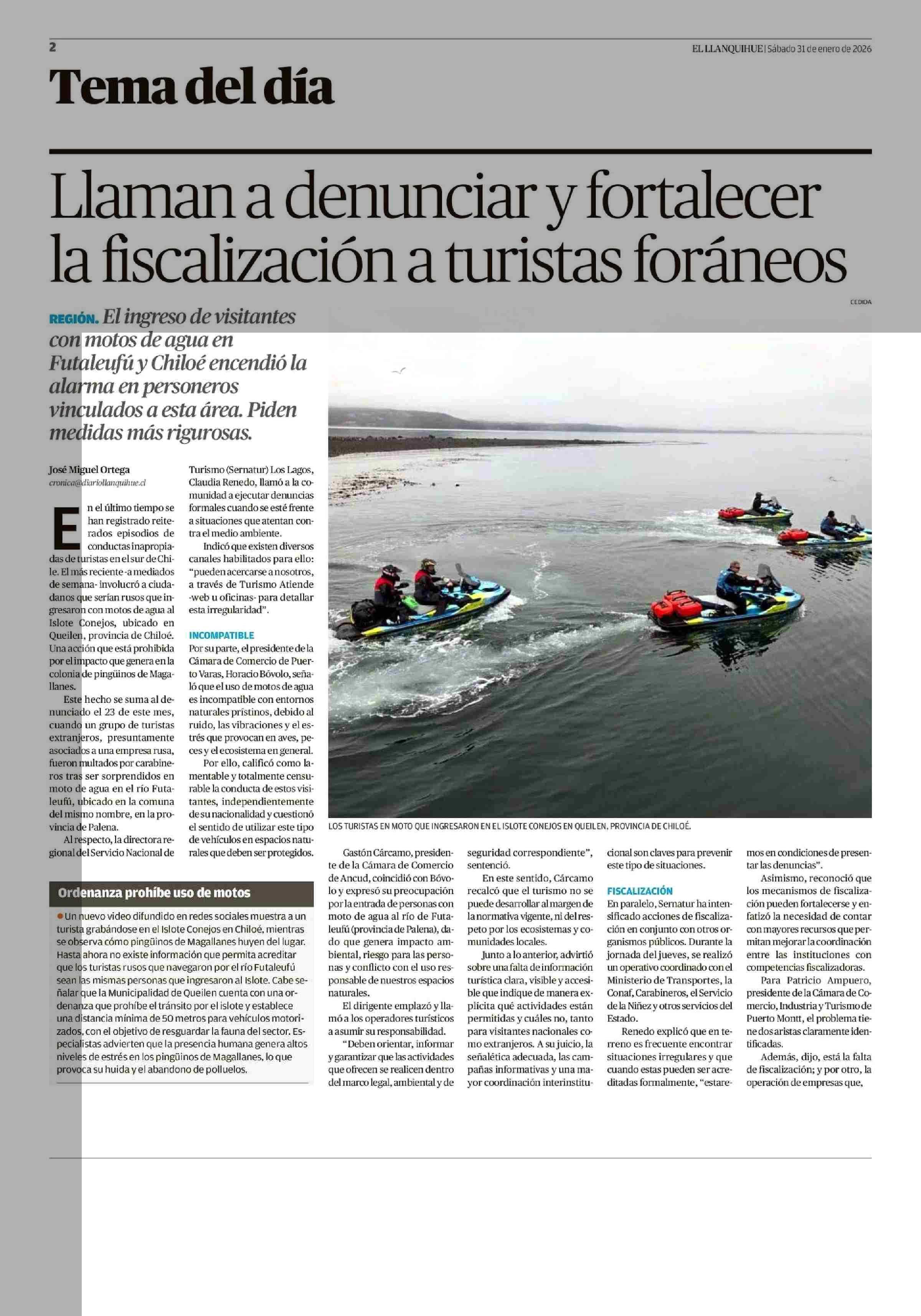 Llaman a denunciar y fortalecer la fiscalización a turistas foráneos 31-01-2026 El Llanquihue |