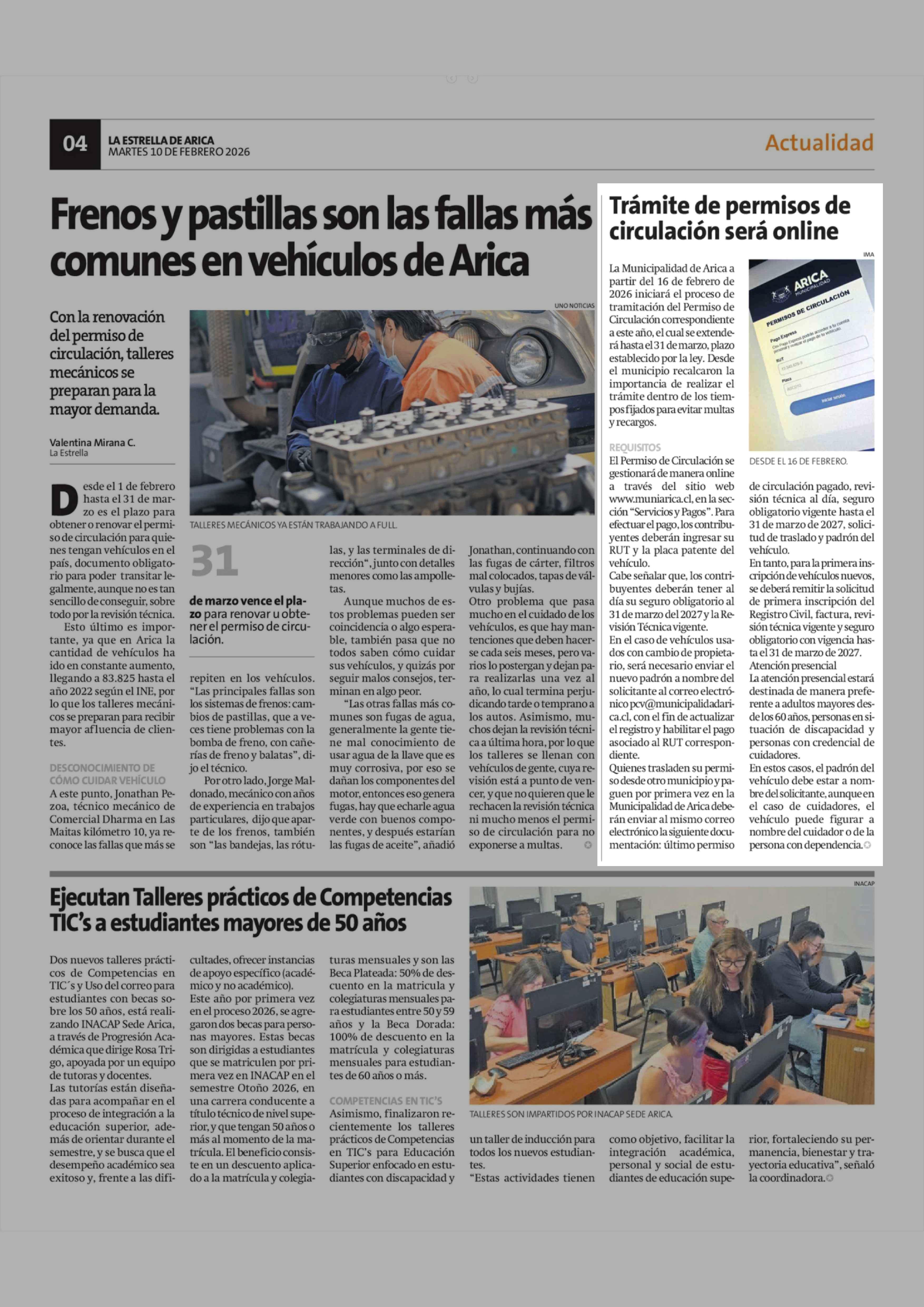 Trámite de permisos de circulación será online 10-02-2026 La Estrella de Arica |