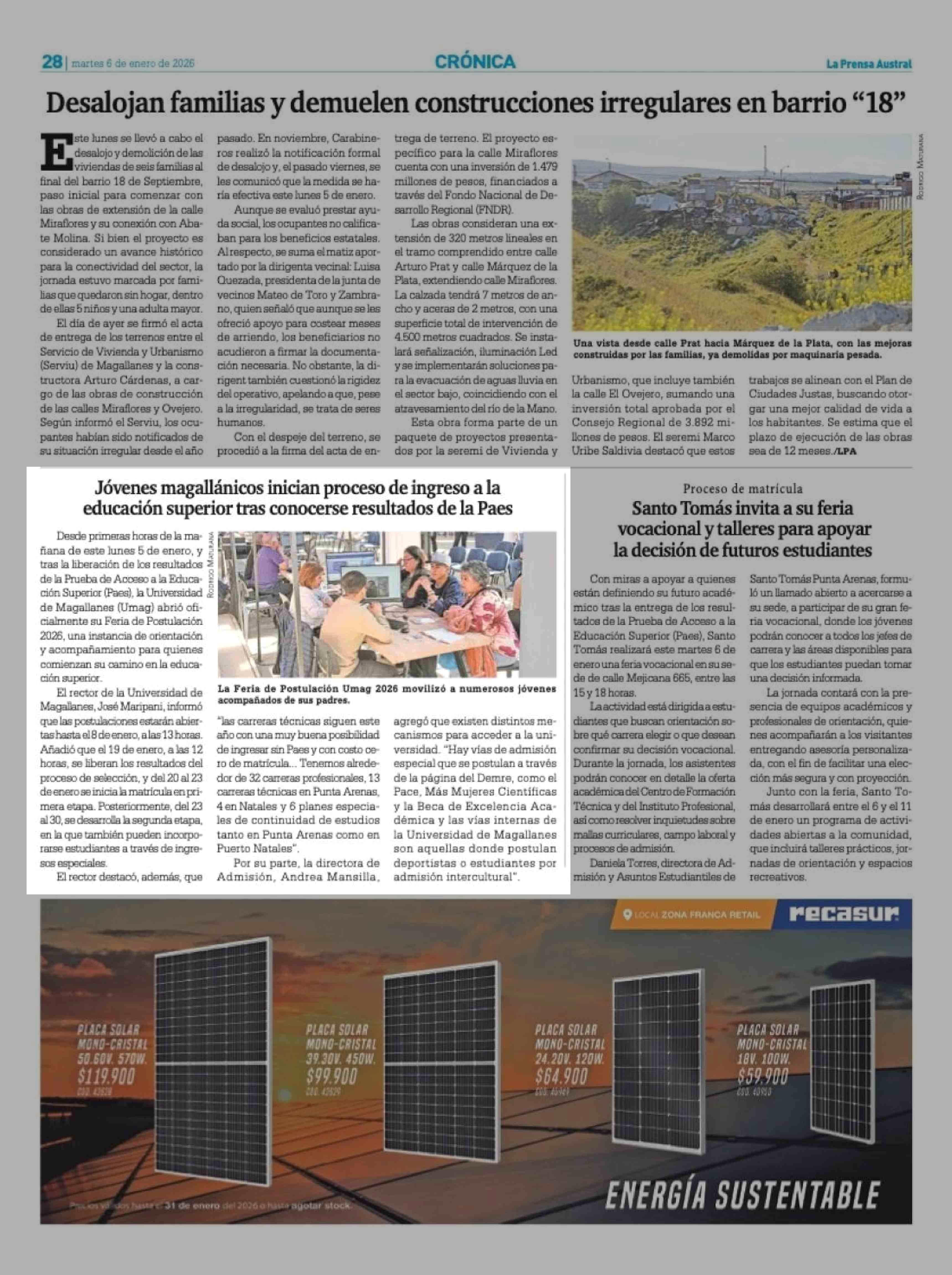 Jóvenes magallánicos inician proceso de ingreso a la educación superior tras conocerse resultados de la Paes 06-01-2026 La Prensa Austral |