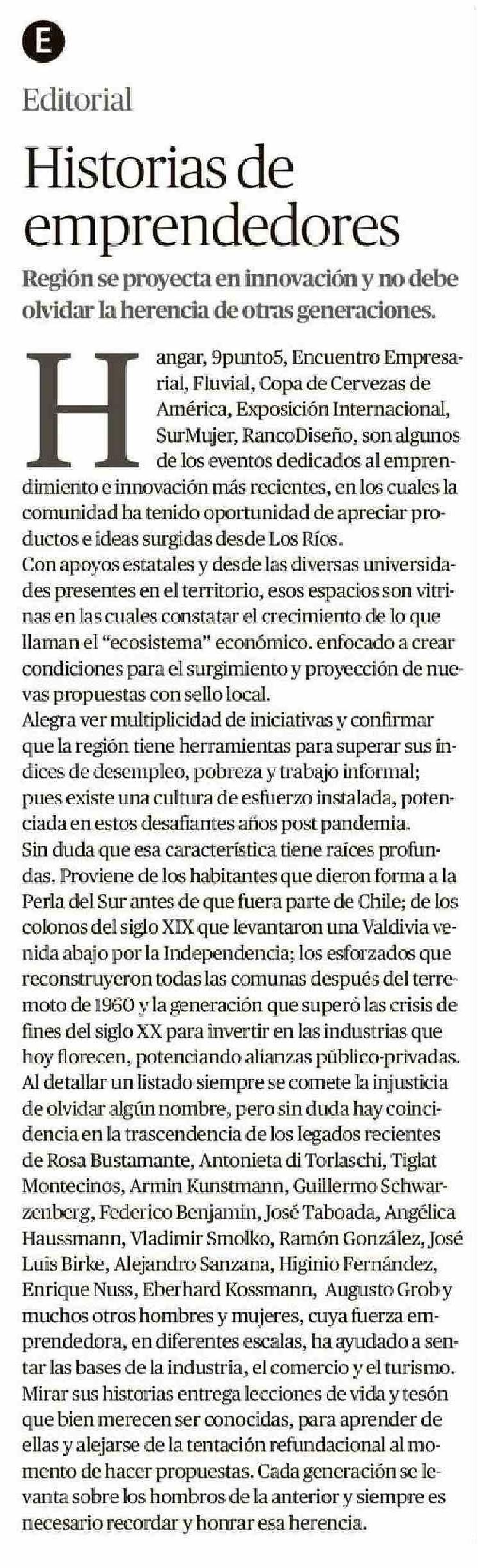 EDITORIAL: Historias de emprendedores 01-12-2024 Diario Austral Región de Los Ríos |