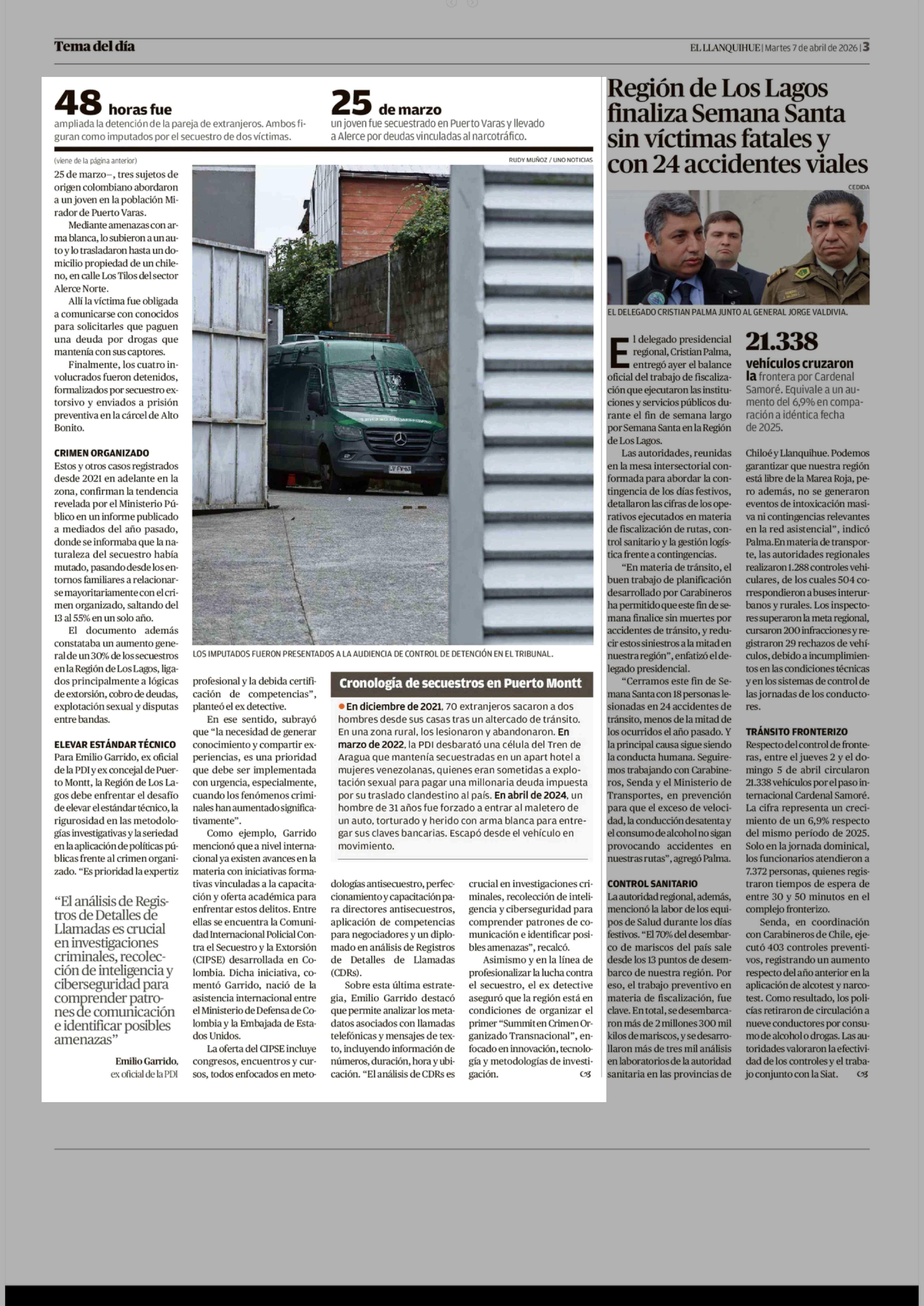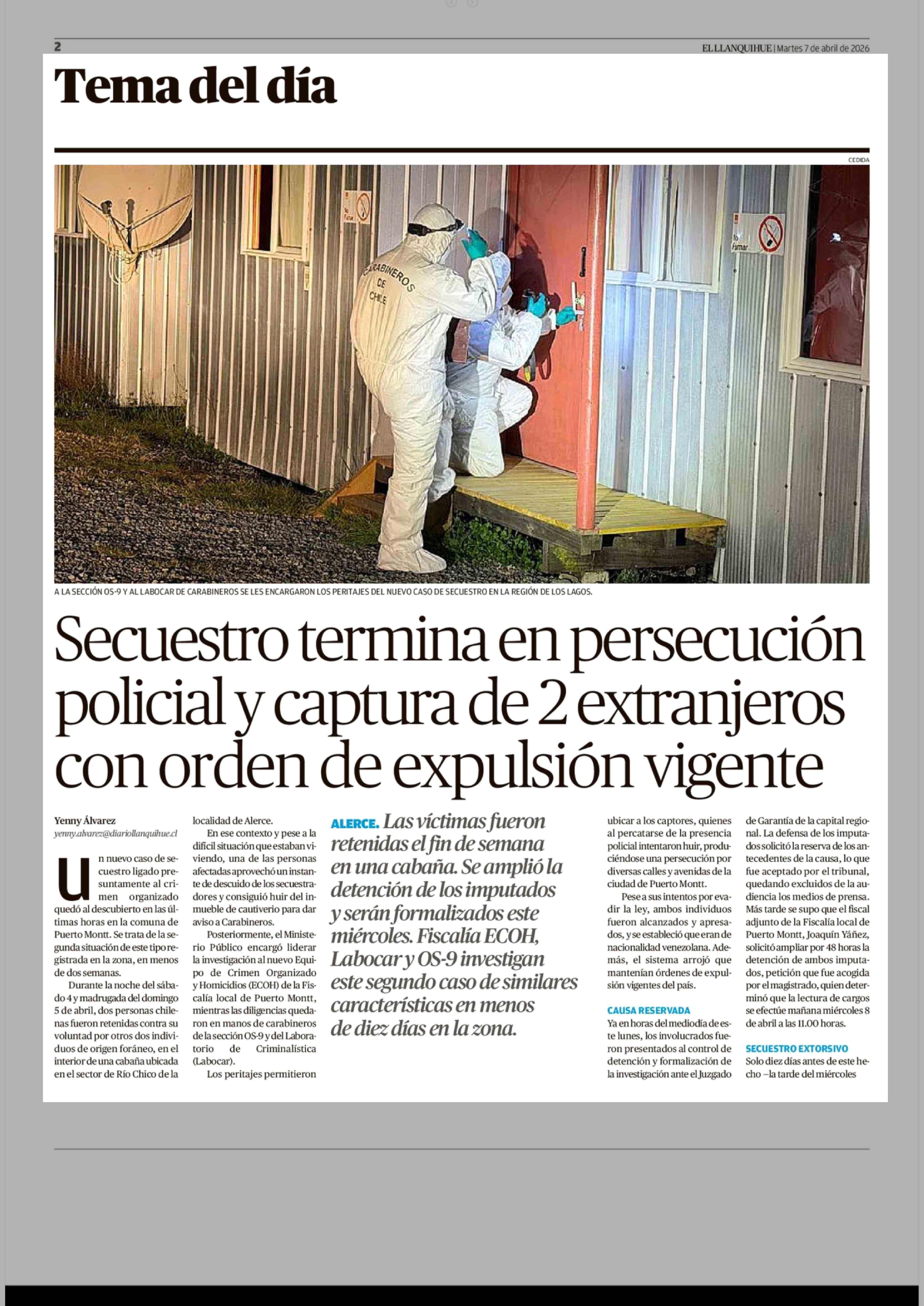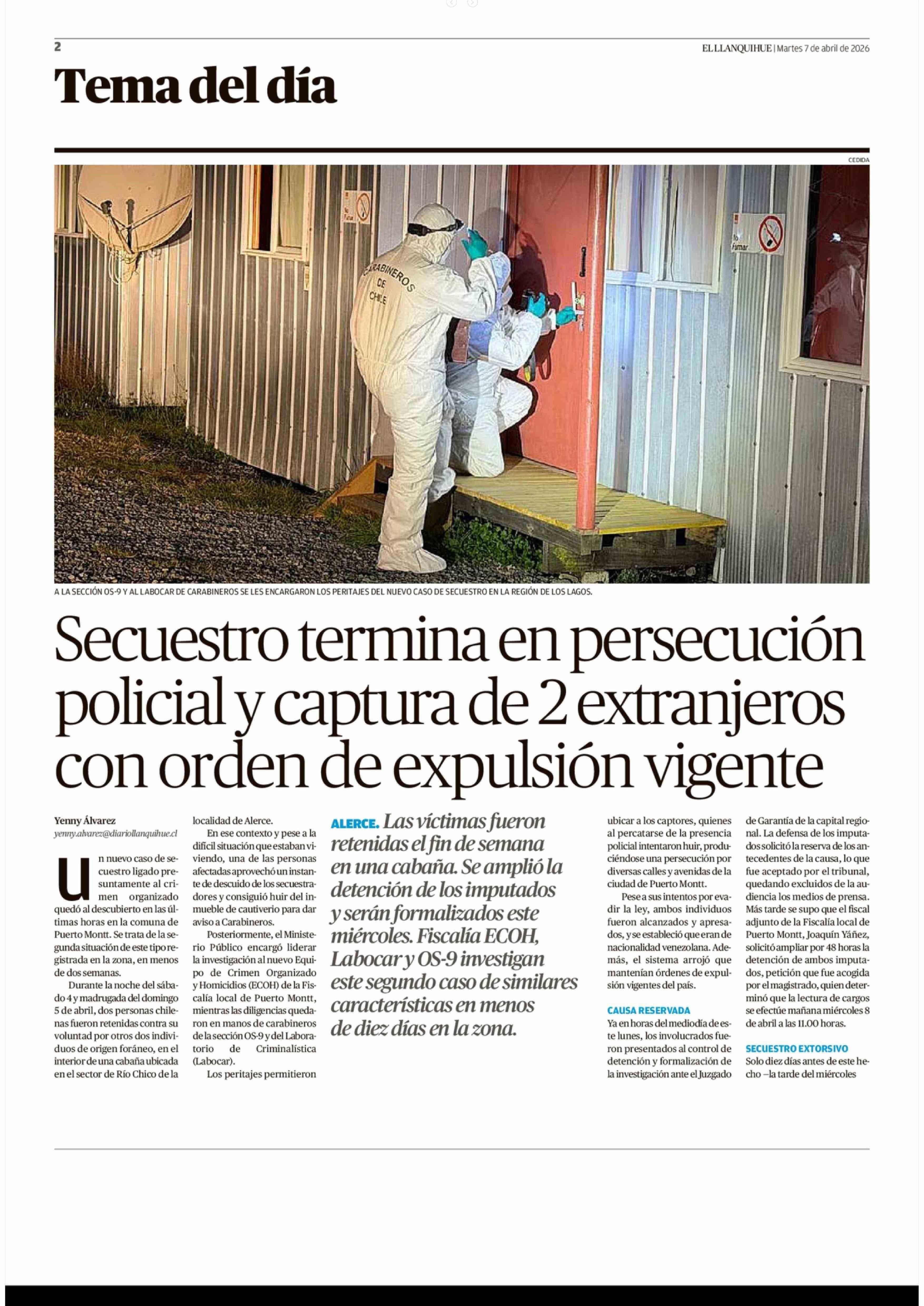 Secuestro termina en persecución policial y captura de 2 extranjeros con orden de expulsión vigente 07-04-2026 El Llanquihue |