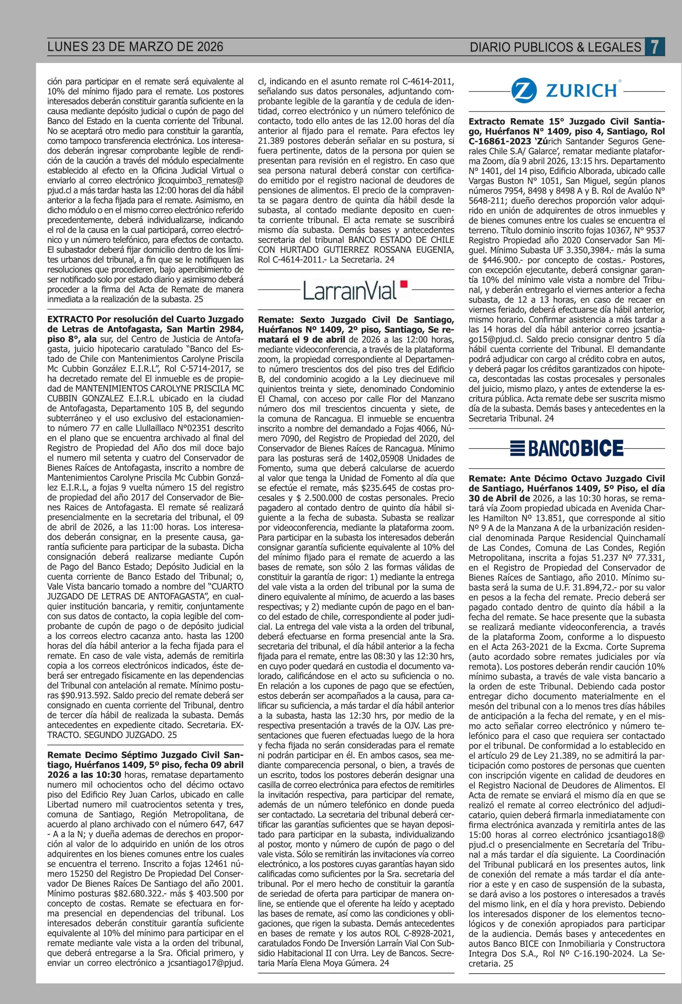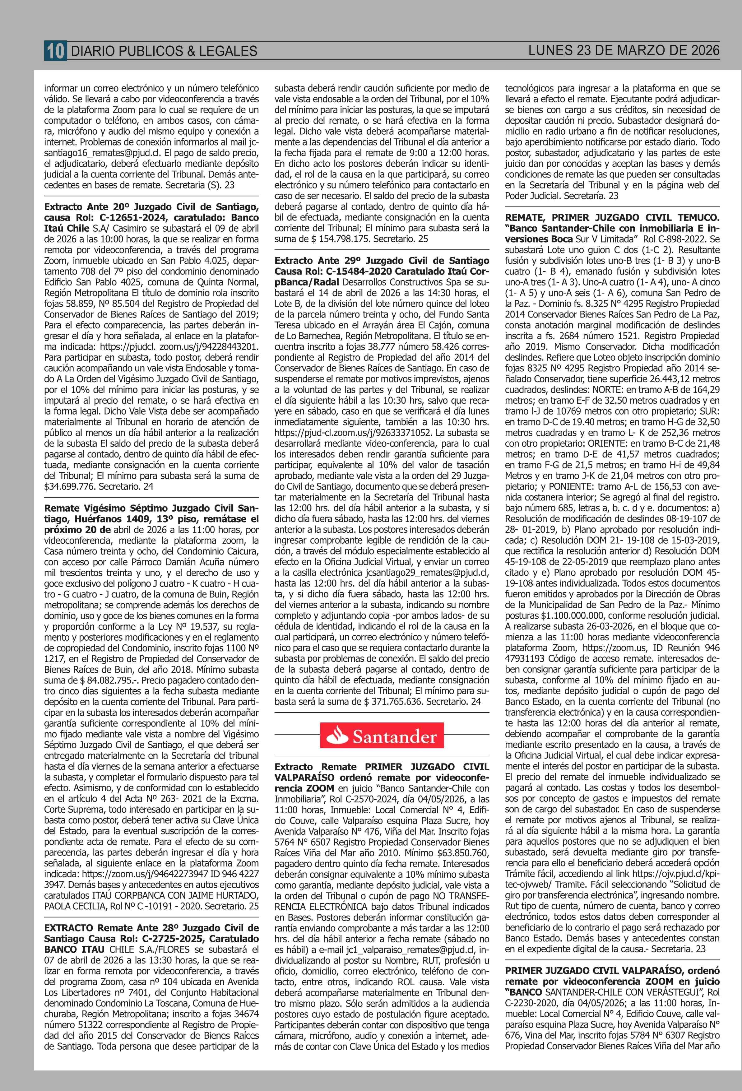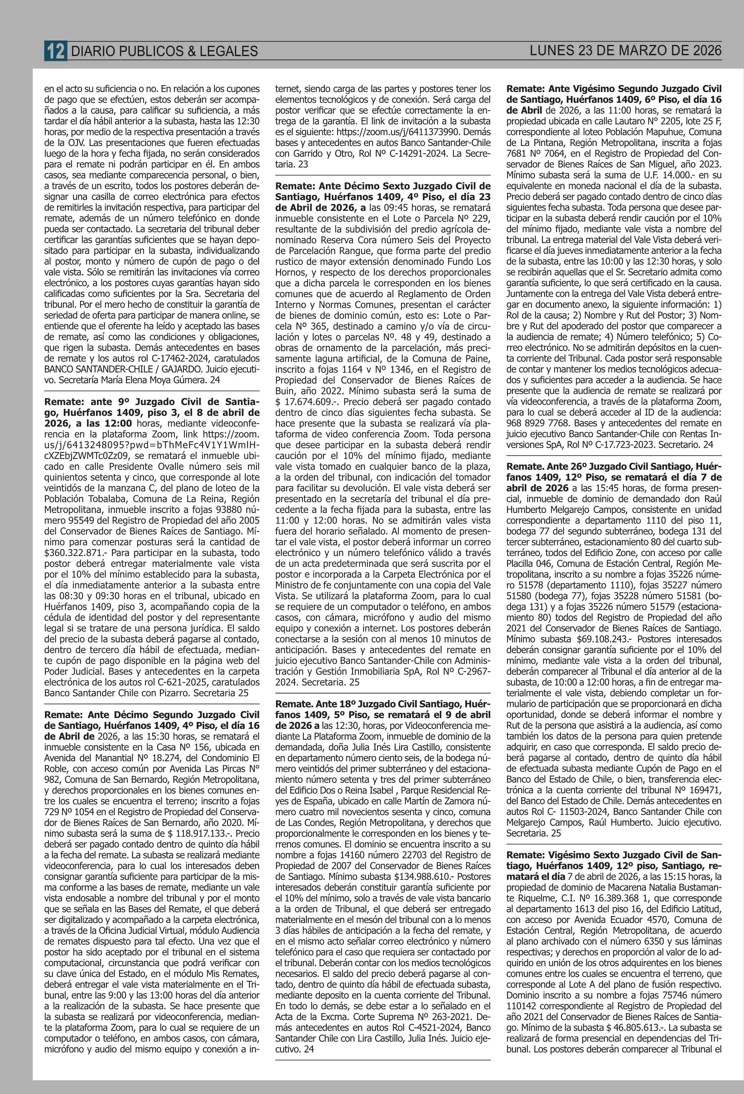 | Fecha: | 23-03-2026 | Sector: | Remates | Región: | Región Metropolitana de Santiago |