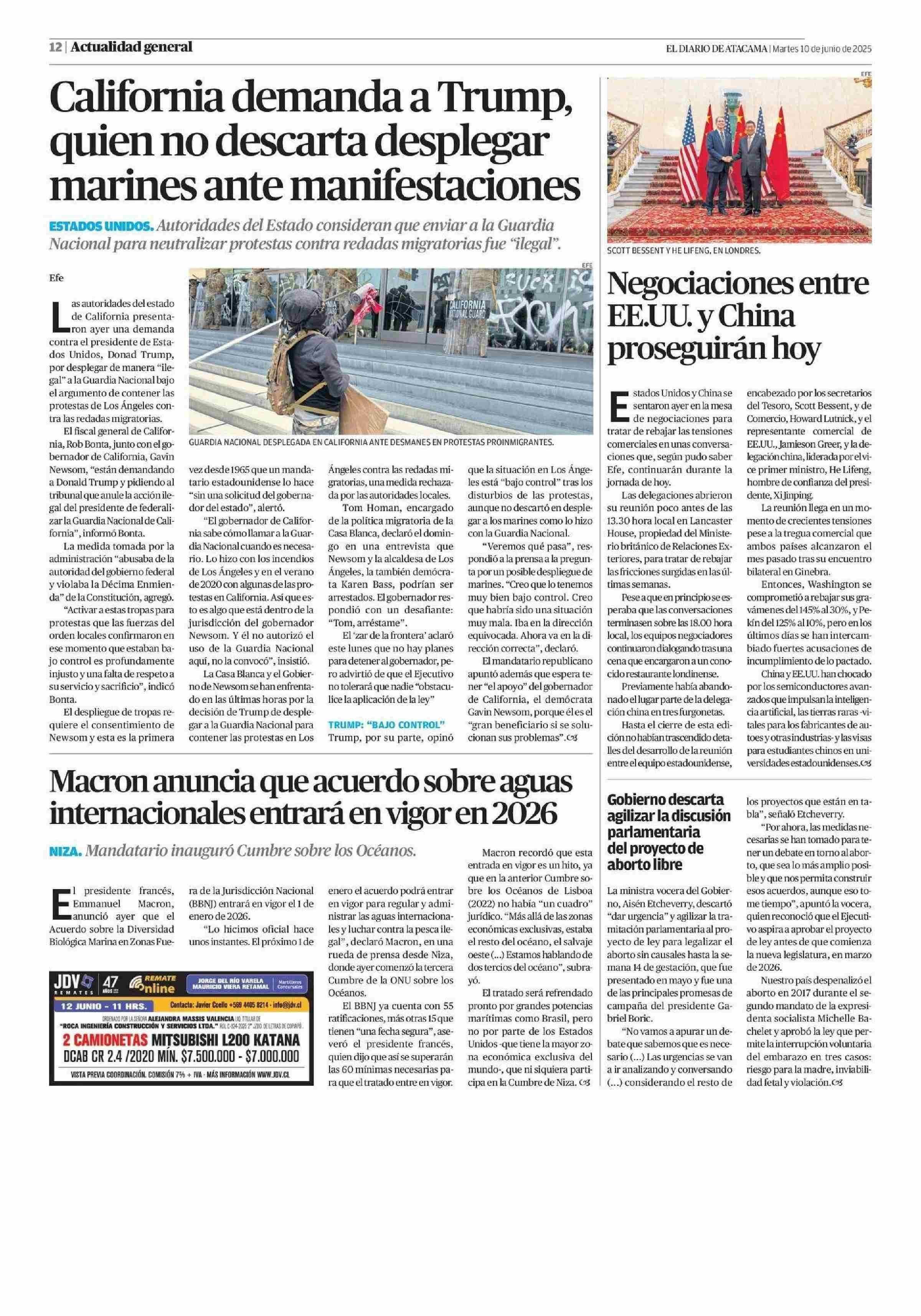 Macron anuncia que acuerdo sobre aguas internacionales entrará en vigor en 2026 10-06-2025 El Diario de Atacama |