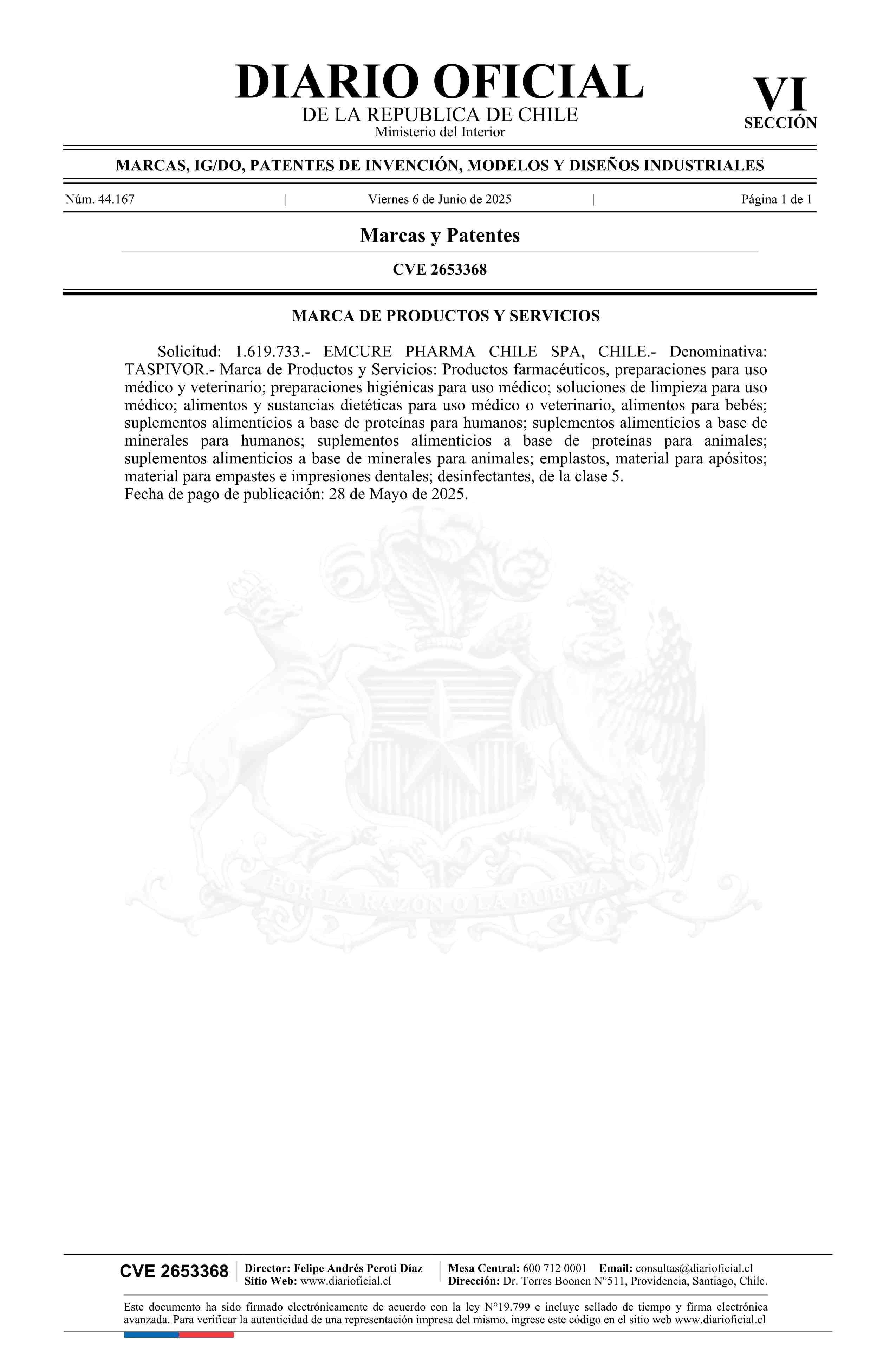 Solicitud número 1619733.- TASPIVOR 06-06-2025 Diario Oficial Edición Electrónica |