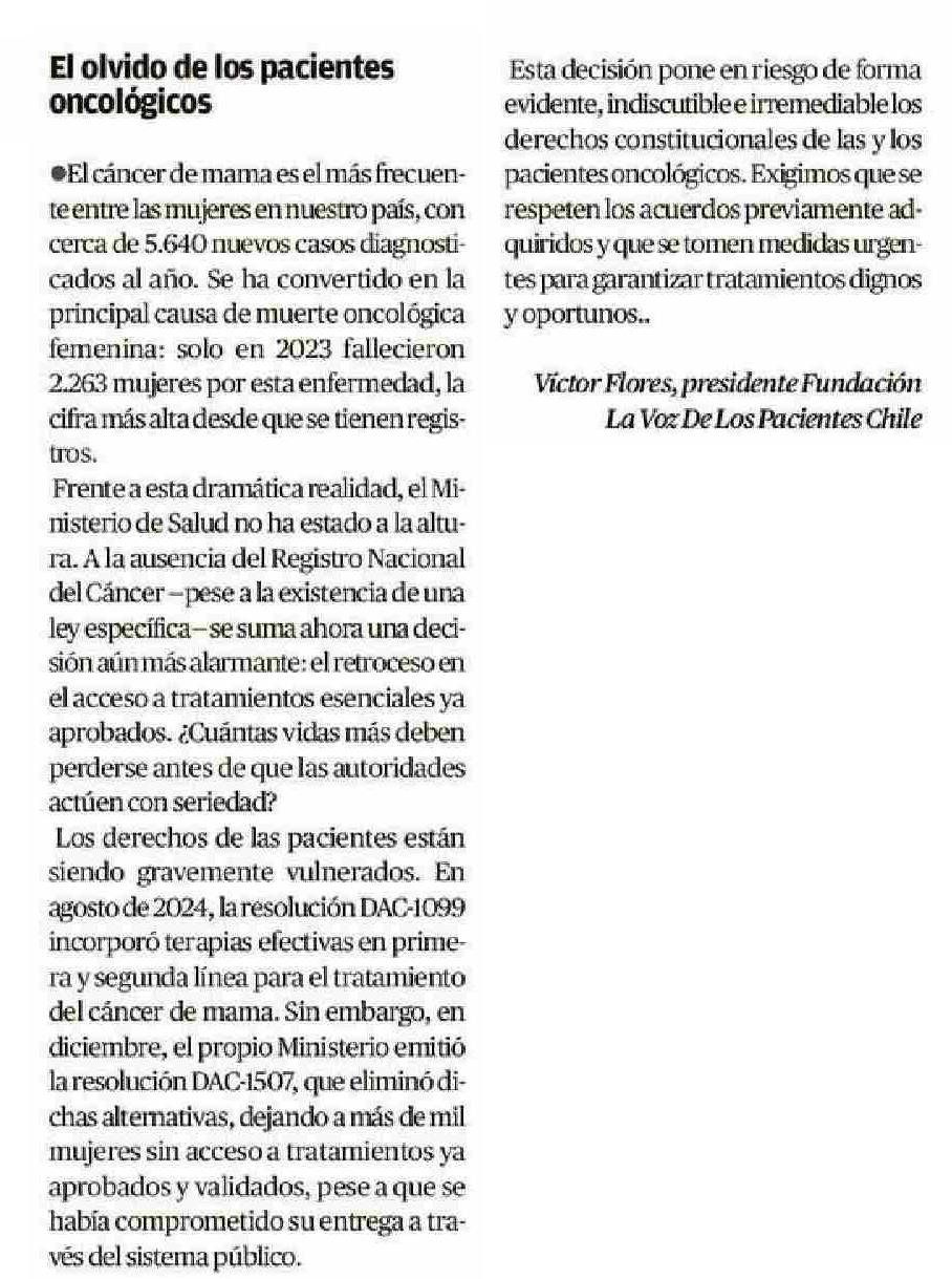 El olvido de los pacientes oncológicos 19-05-2025 Crónica de Chillán |