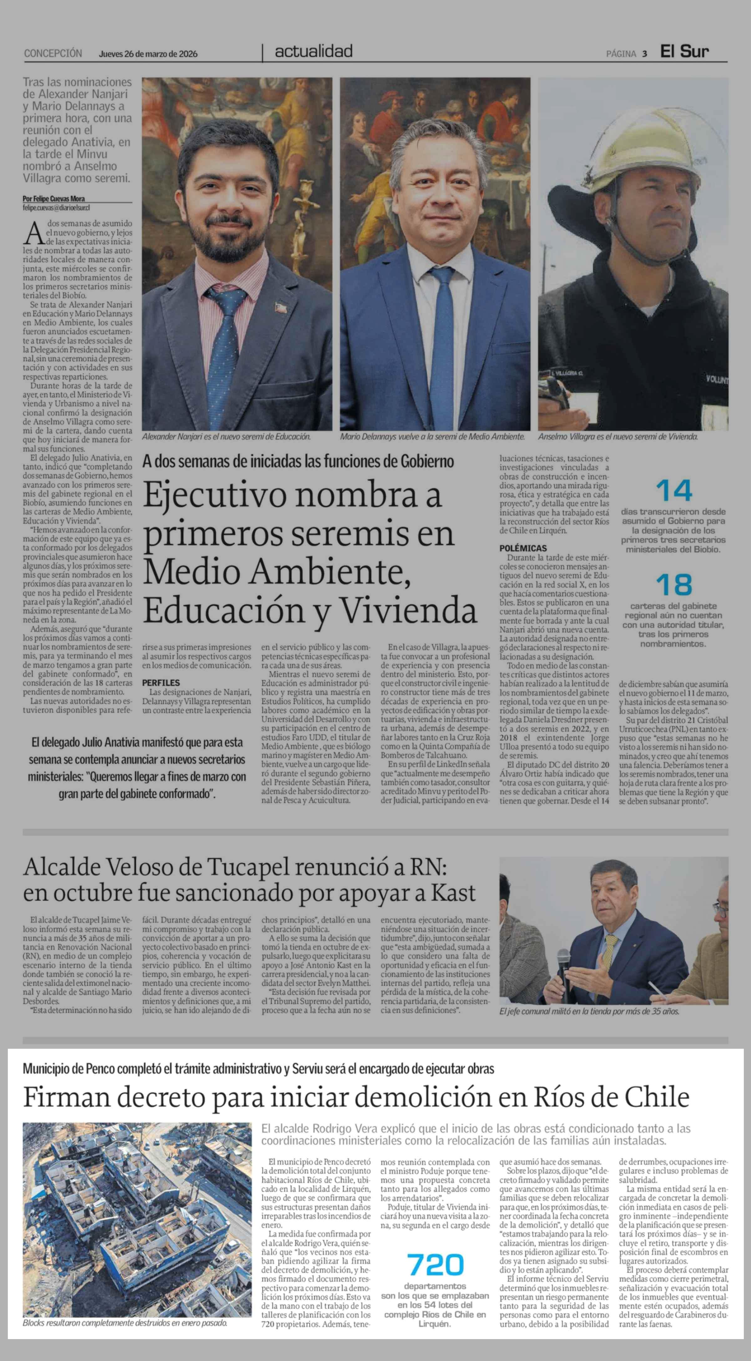 Firman decreto para iniciar demolición en Ríos de Chile 26-03-2026 El Sur |