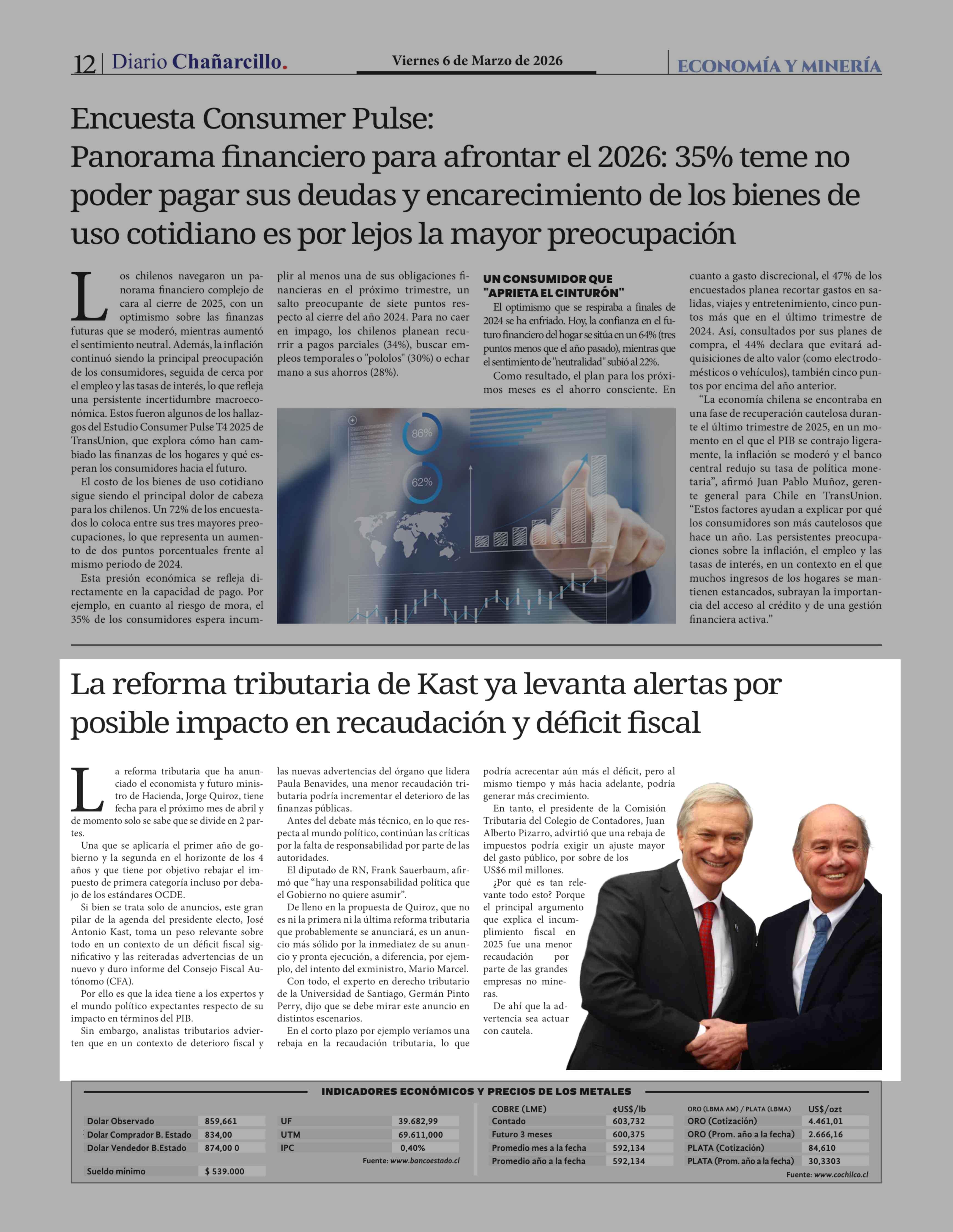 La reforma tributaria de Kast ya levanta alertas por posible impacto en recaudación y déficit fiscal 06-03-2026 Diario Chañarcillo |