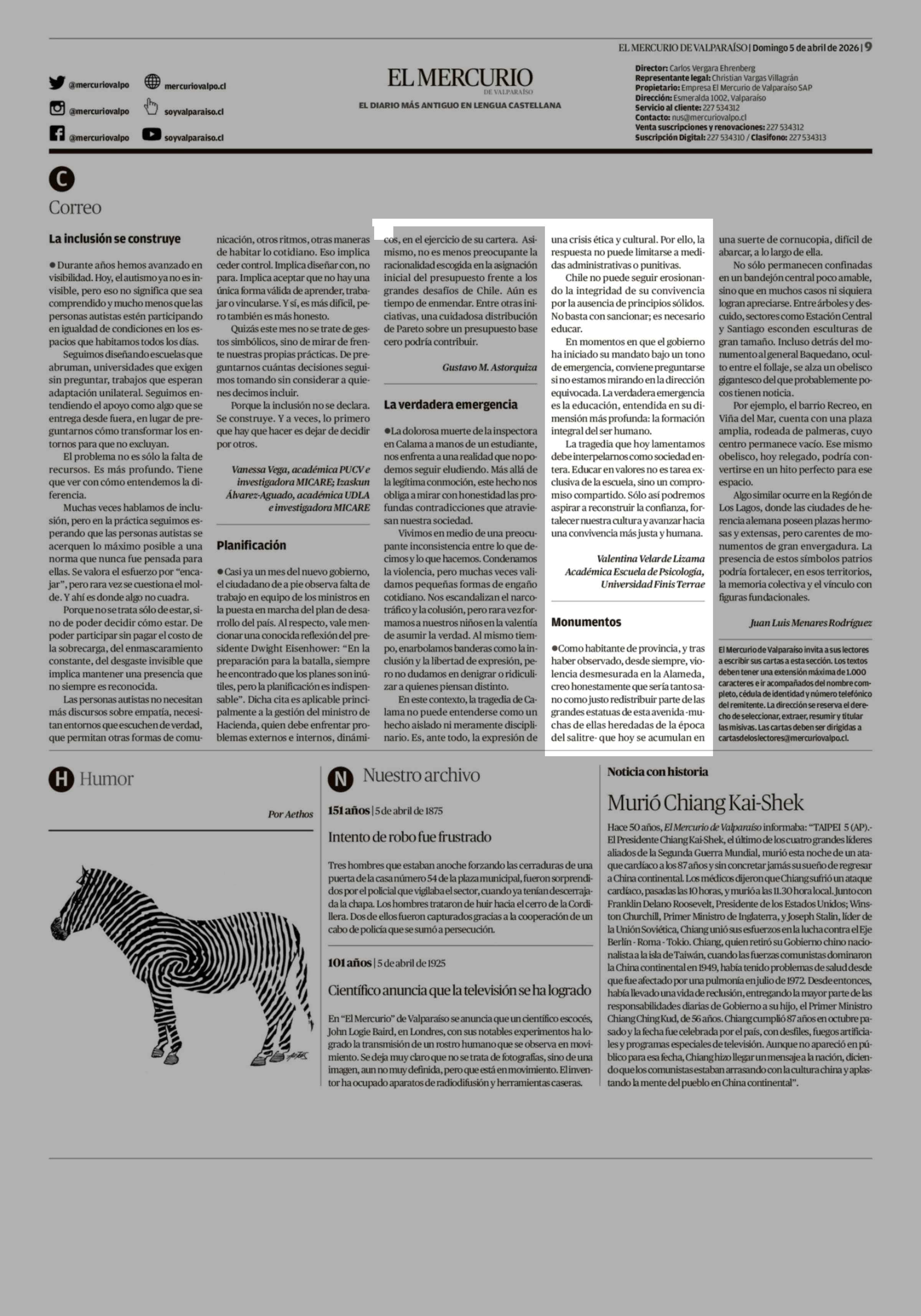 CARTAS: La verdadera emergencia 05-04-2026 El Mercurio de Valparaíso |