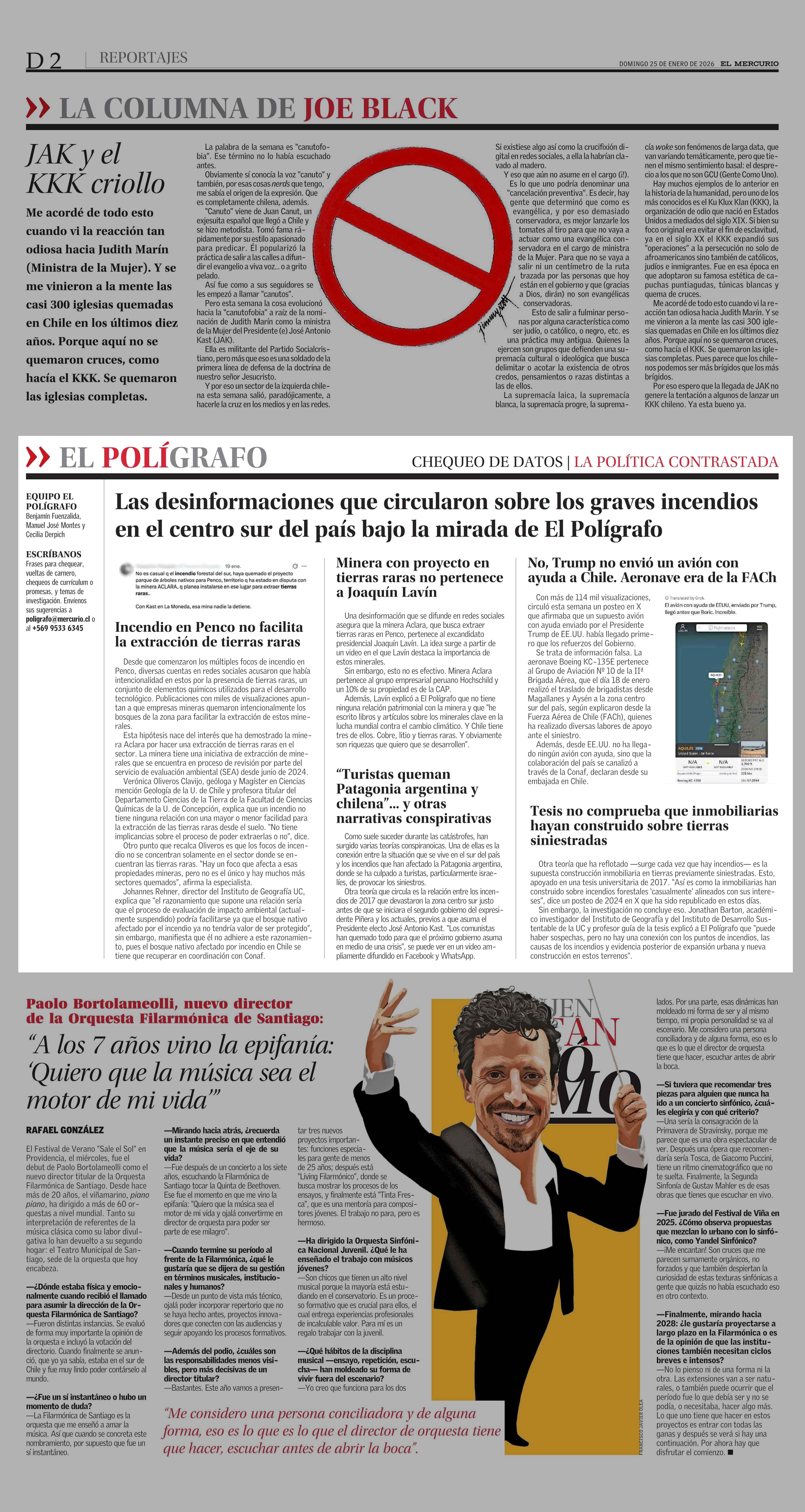Las desinformaciones que circularon sobre los graves incendios en el centro sur del país bajo la mirada de El Polígrafo 25-01-2026 El Mercurio |