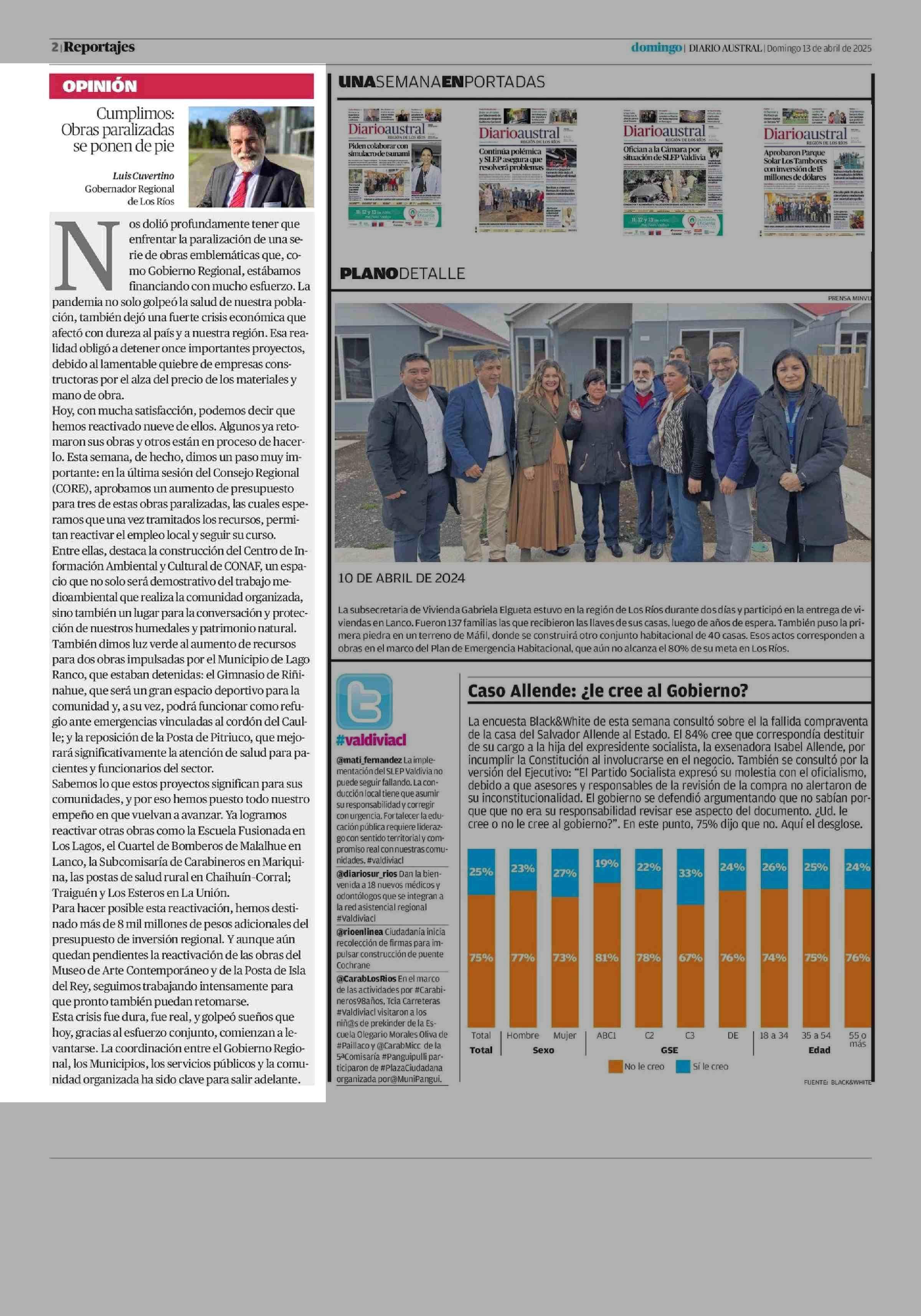 COLUMNAS DE OPINIÓN: Cumplimos: Obras paralizadas se ponen de pie 13-04-2025 Diario Austral Región de Los Ríos |