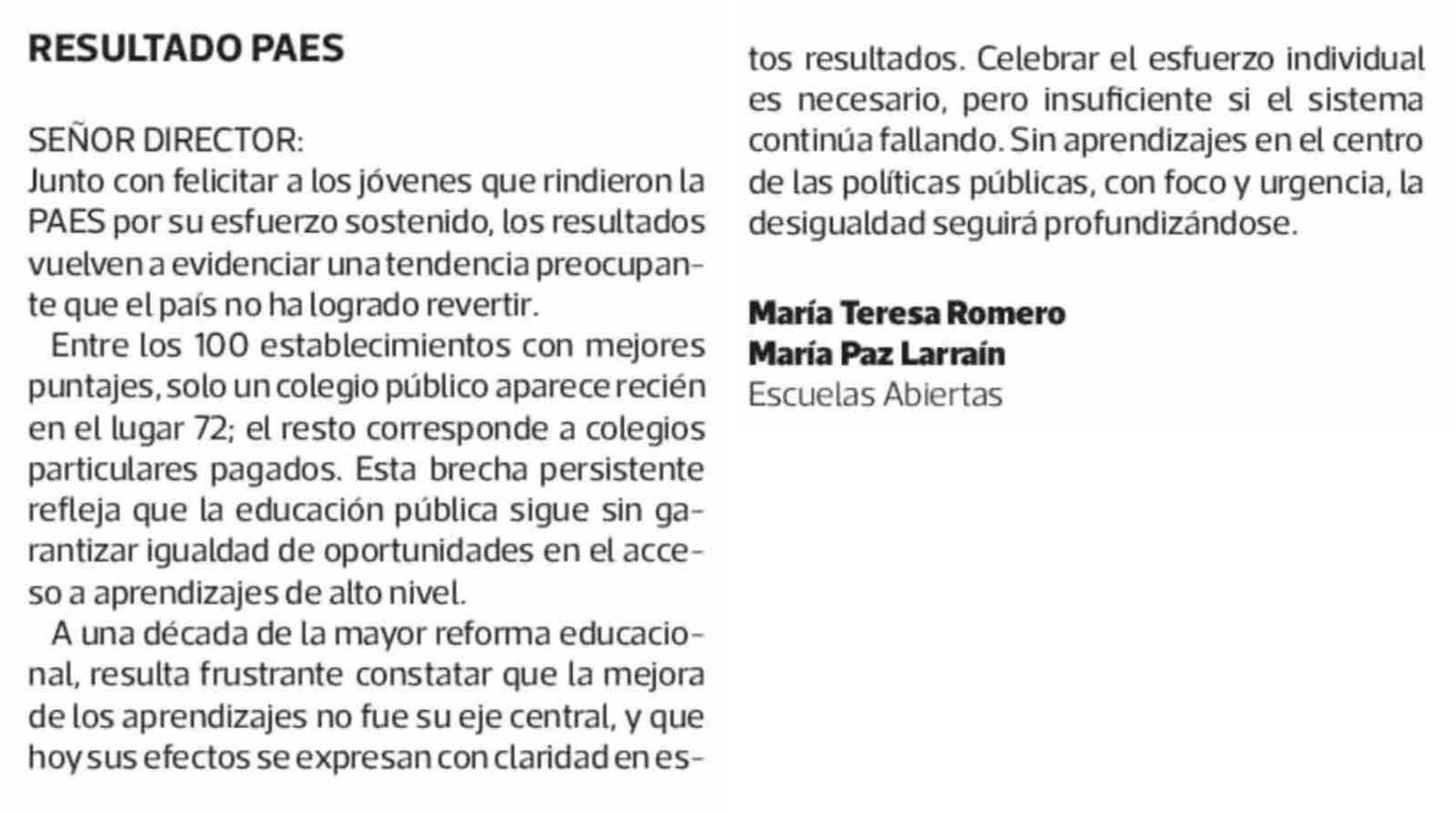 CARTAS: RESULTADO PAES 08-01-2026 La Tercera |