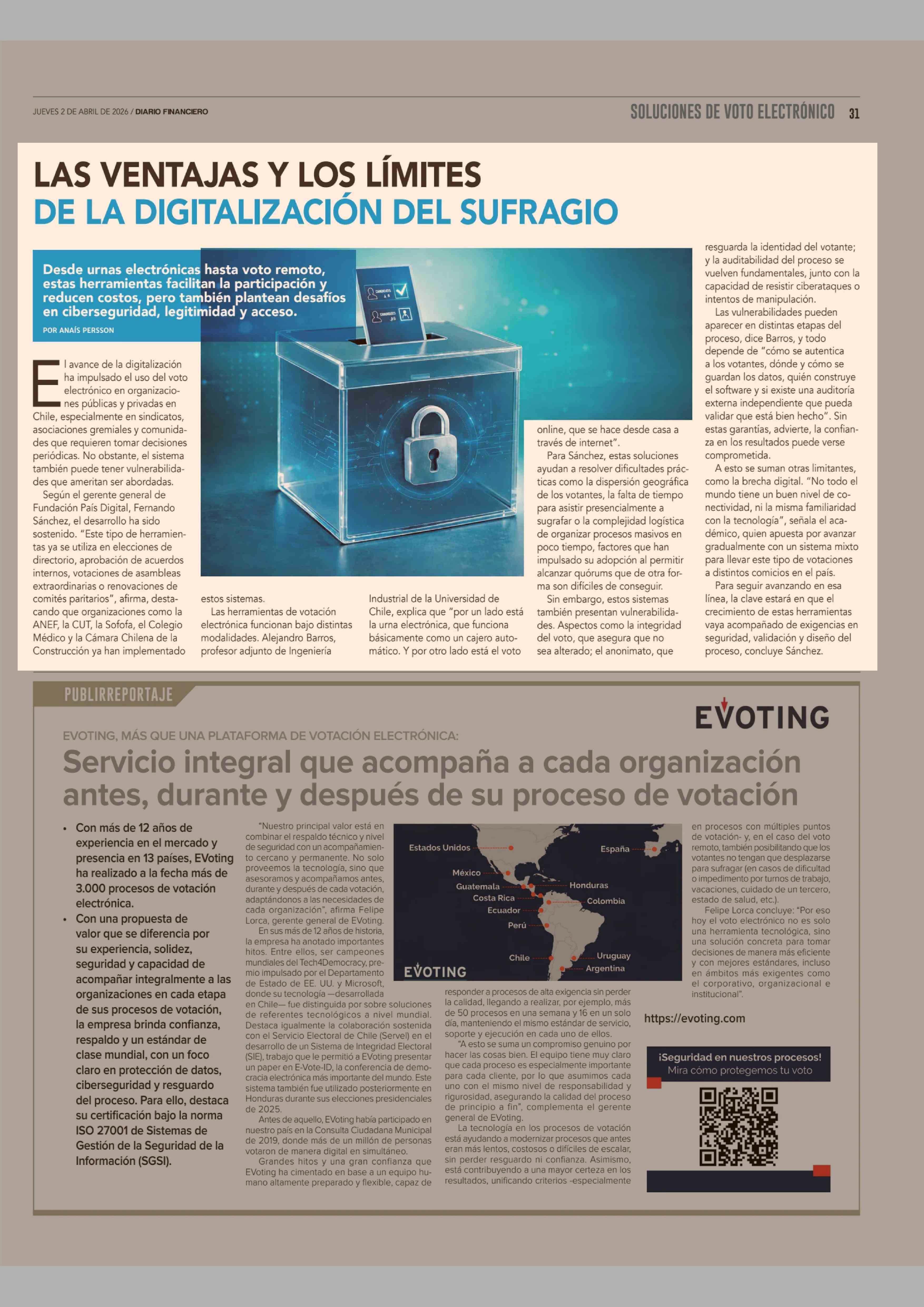 LAS VENTAJAS Y LOS LÍMITES DE LA DIGITALIZACIÓN DEL SUFRAGIO 02-04-2026 Diario Financiero |