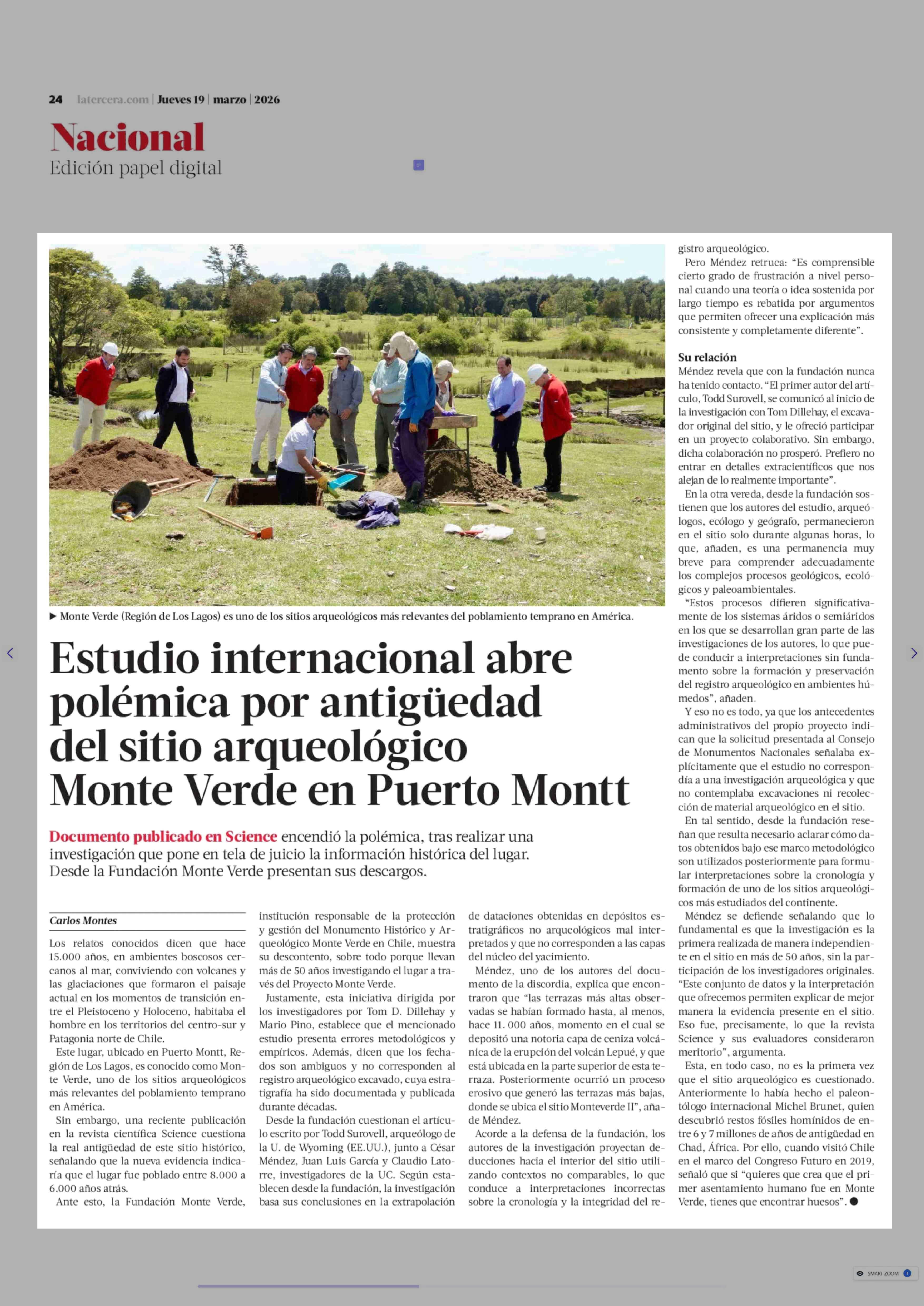 Título: Estudio internacional abre polémica por antigüedad del sitio arqueológico Monte Verde en Puerto Montt