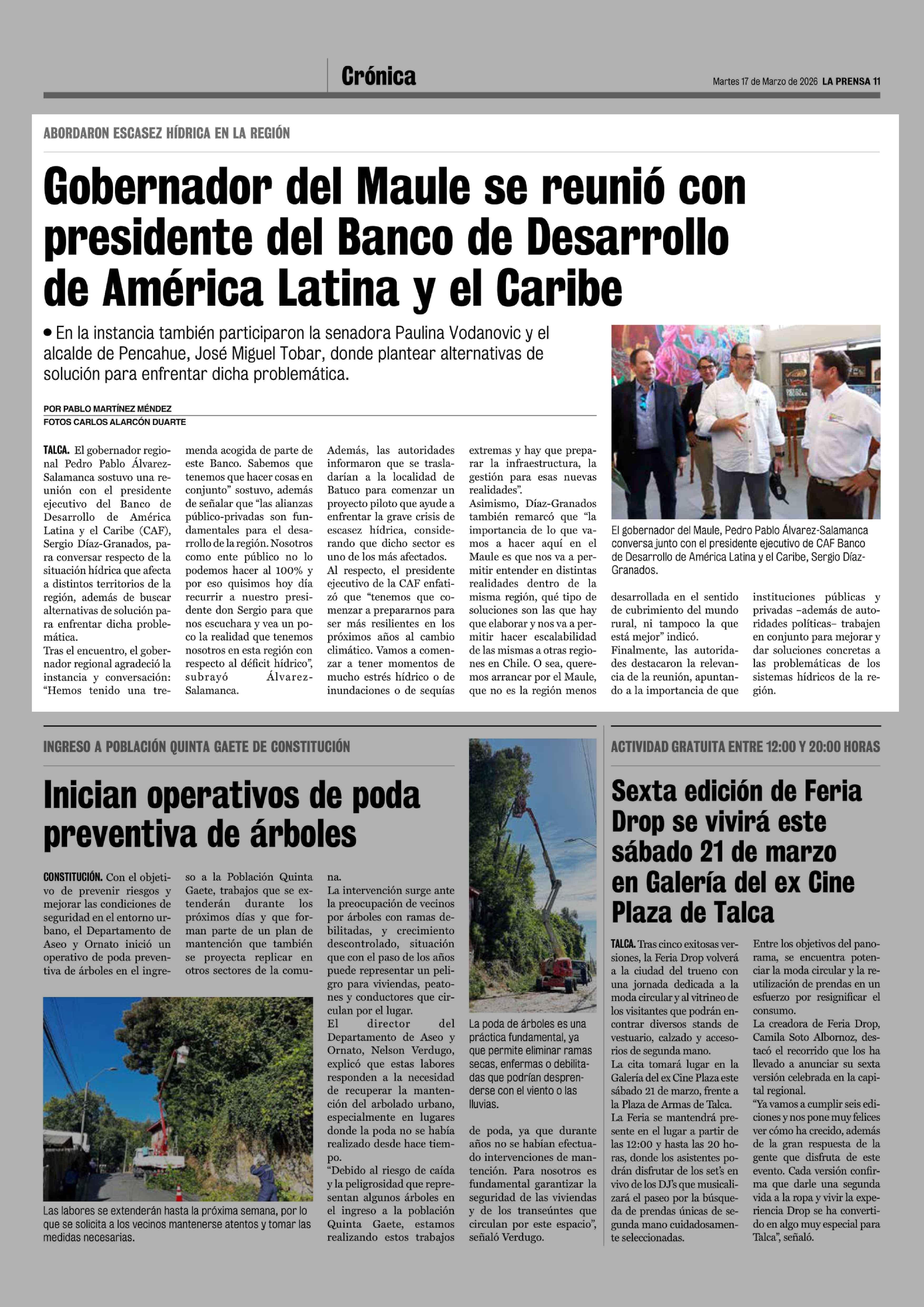 Gobernador del Maule se reunió con presidente del Banco de Desarrollo de América Latina y el Caribe 17-03-2026 La Prensa de Curicó |