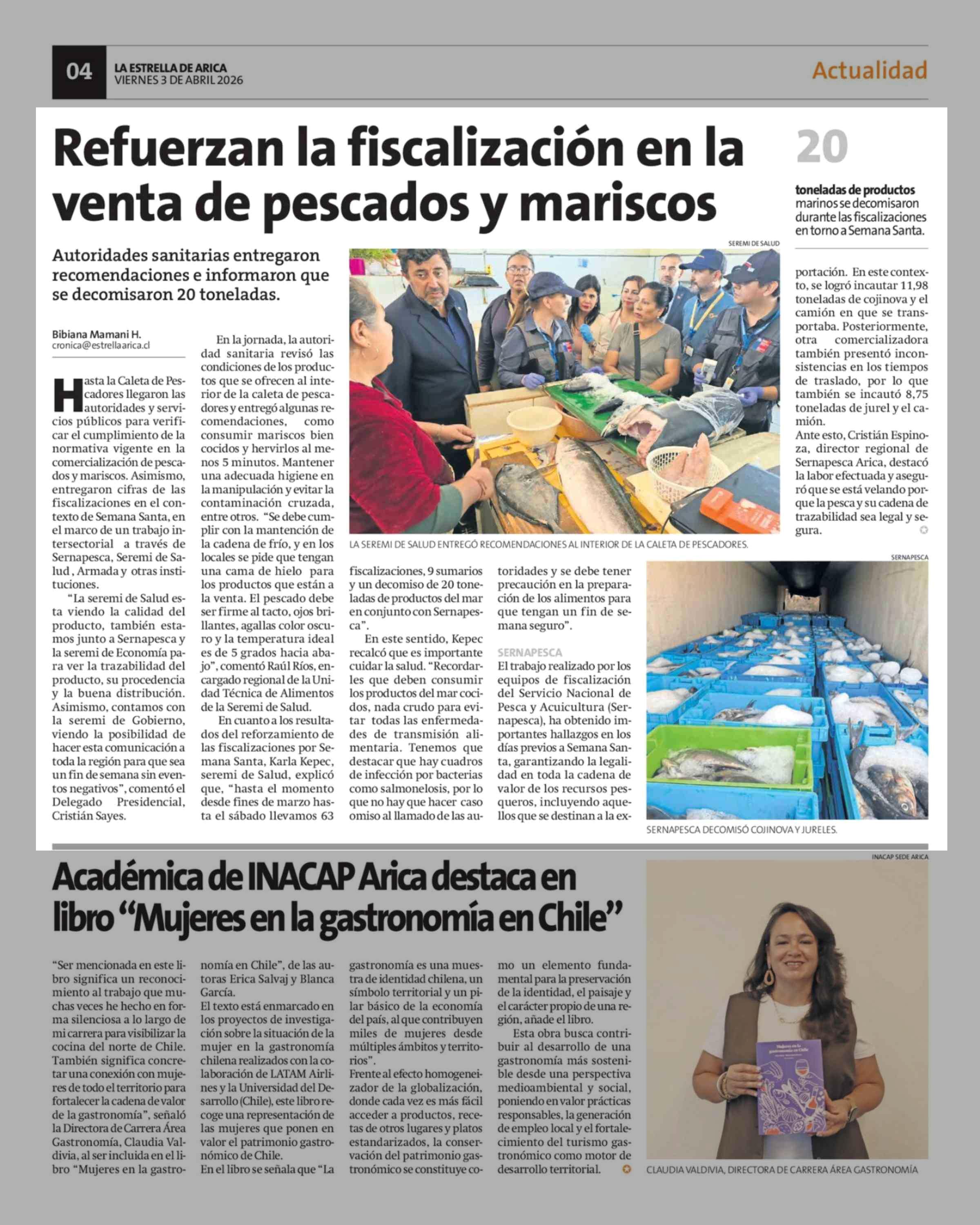 Refuerzan la fiscalización en la venta de pescados y mariscos 03-04-2026 La Estrella de Arica |