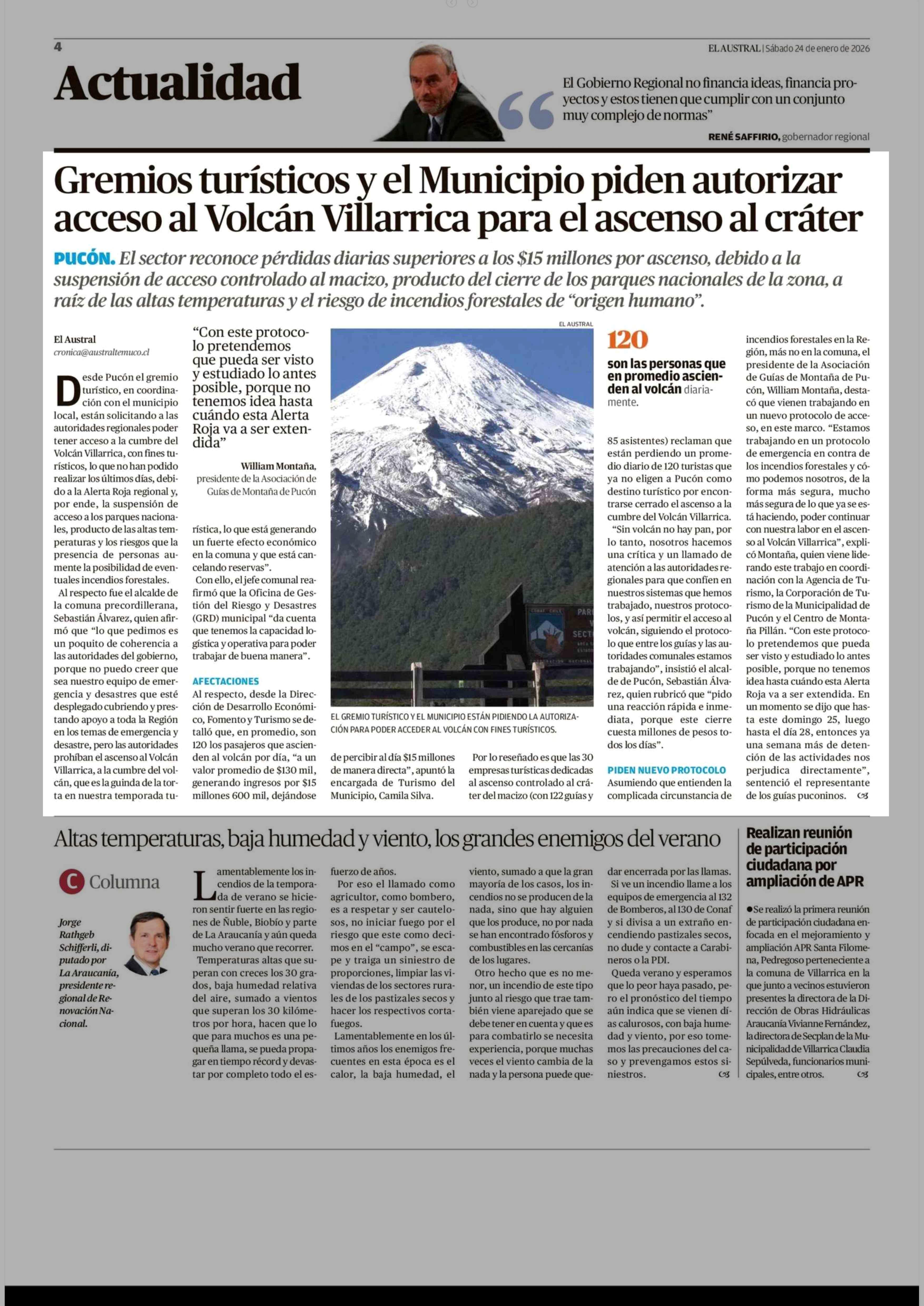 Título: Gremios turísticos y el Municipio piden autorizar acceso al Volcán Villarrica para el ascenso al cráter