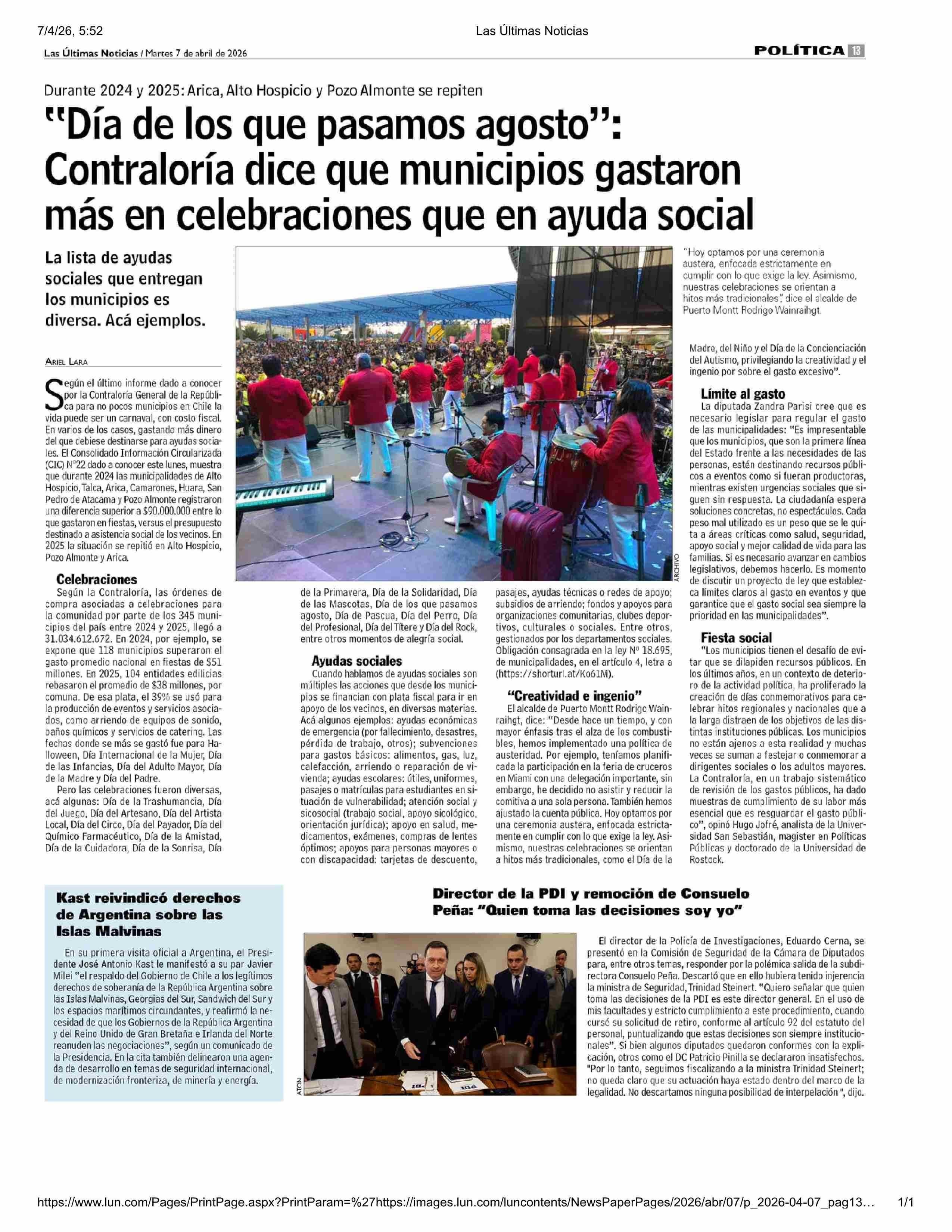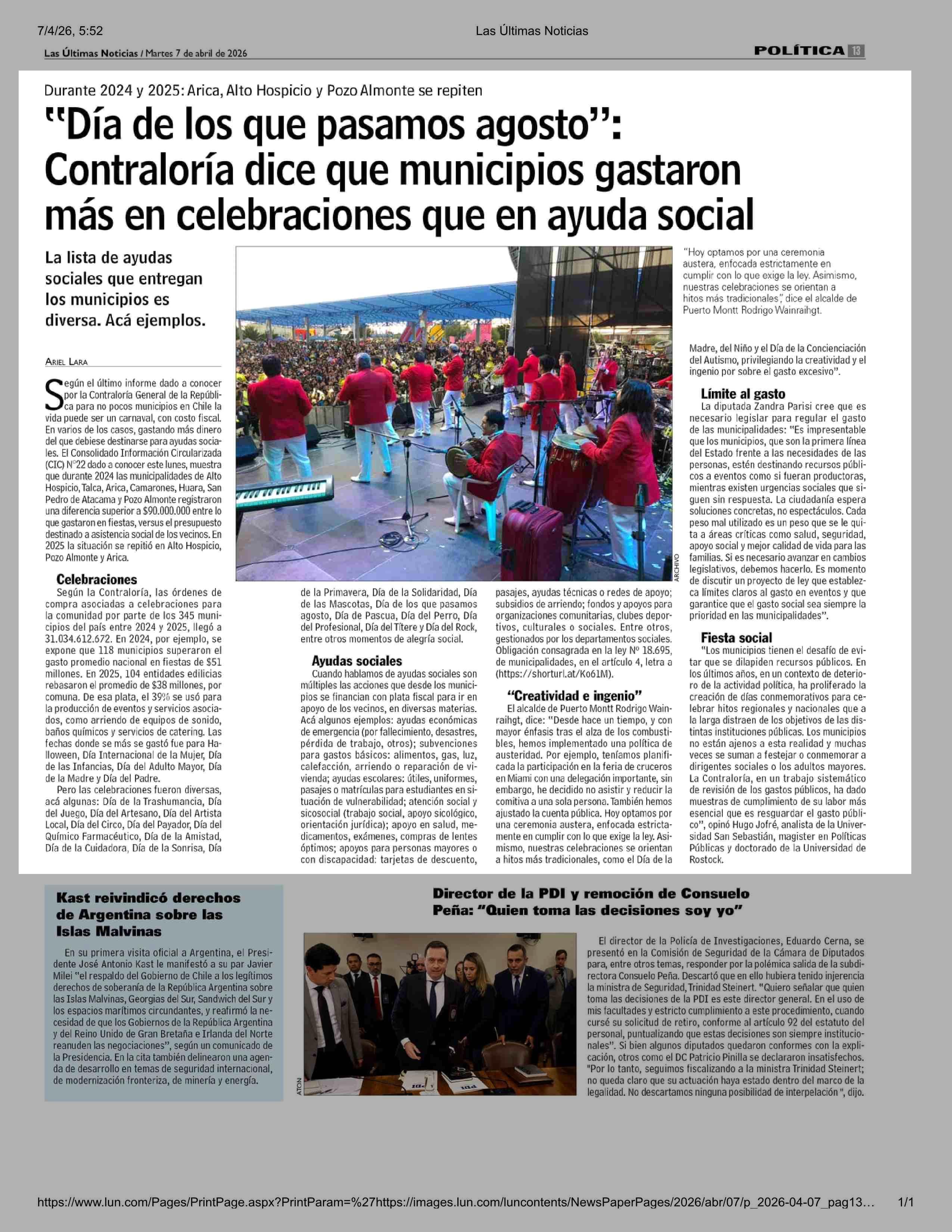 Título: “Día de los que pasamos agosto””: Contraloría dice que municipios gastaron más en celebraciones que en ayuda social