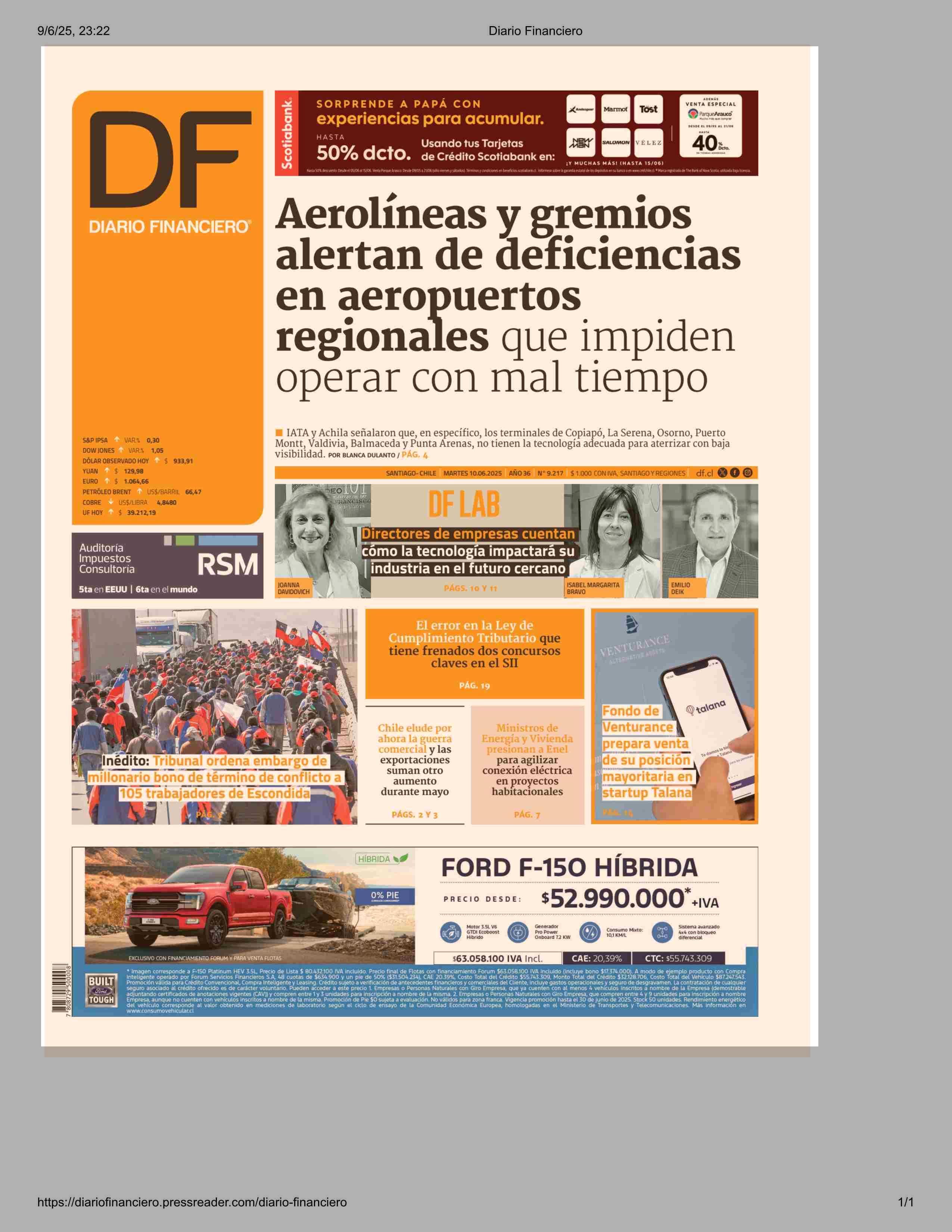 PORTADA DIARIO FINANCIERO CHILE 10-06-2025 Diario Financiero |
