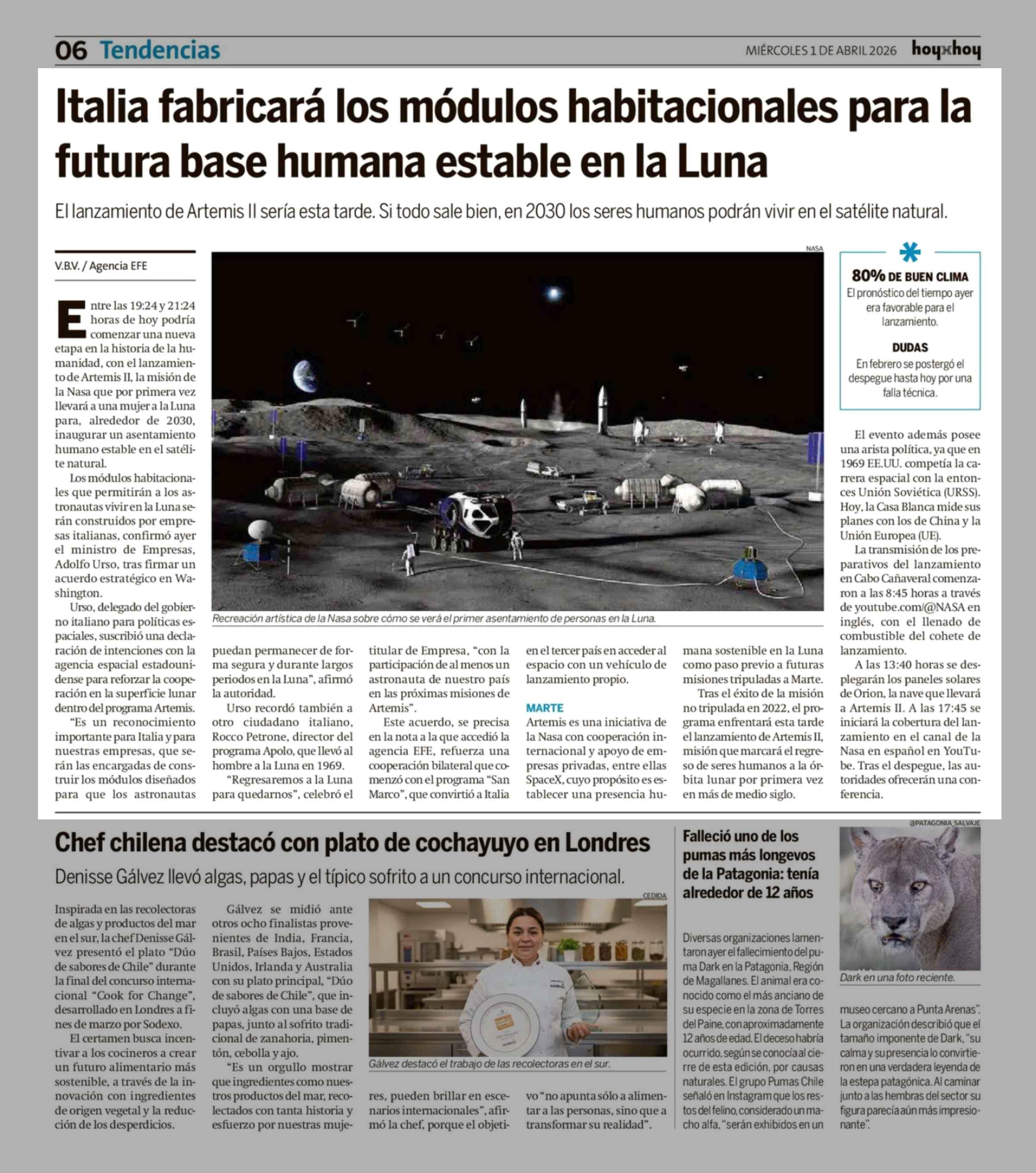 Título: Italia fabricará los módulos habitacionales para la futura base humana estable en la Luna
