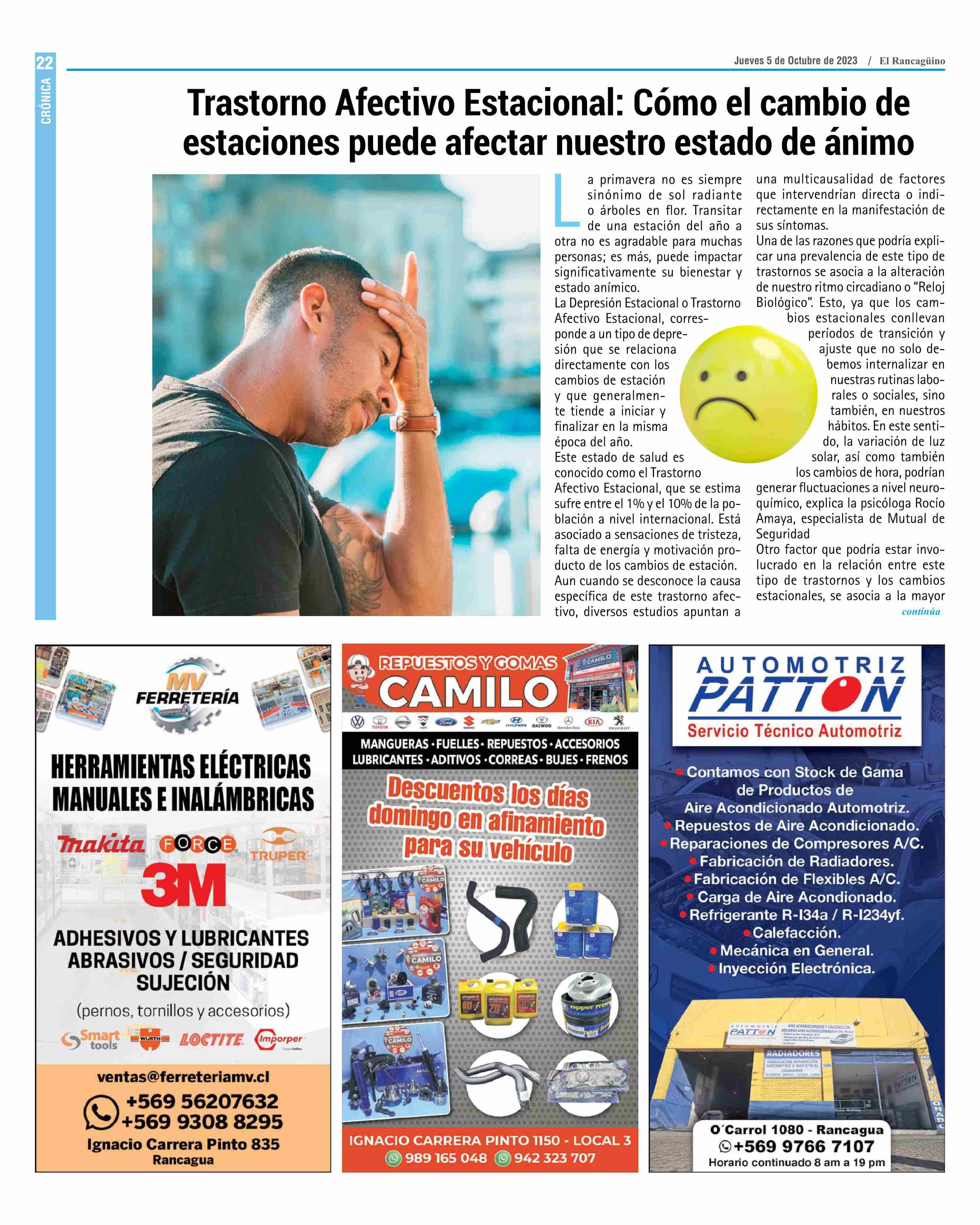 Trastorno Afectivo Estacional: Cómo el cambio de estaciones puede afectar nuestro estado de ánimo 05-10-2023 El Rancagüino |
