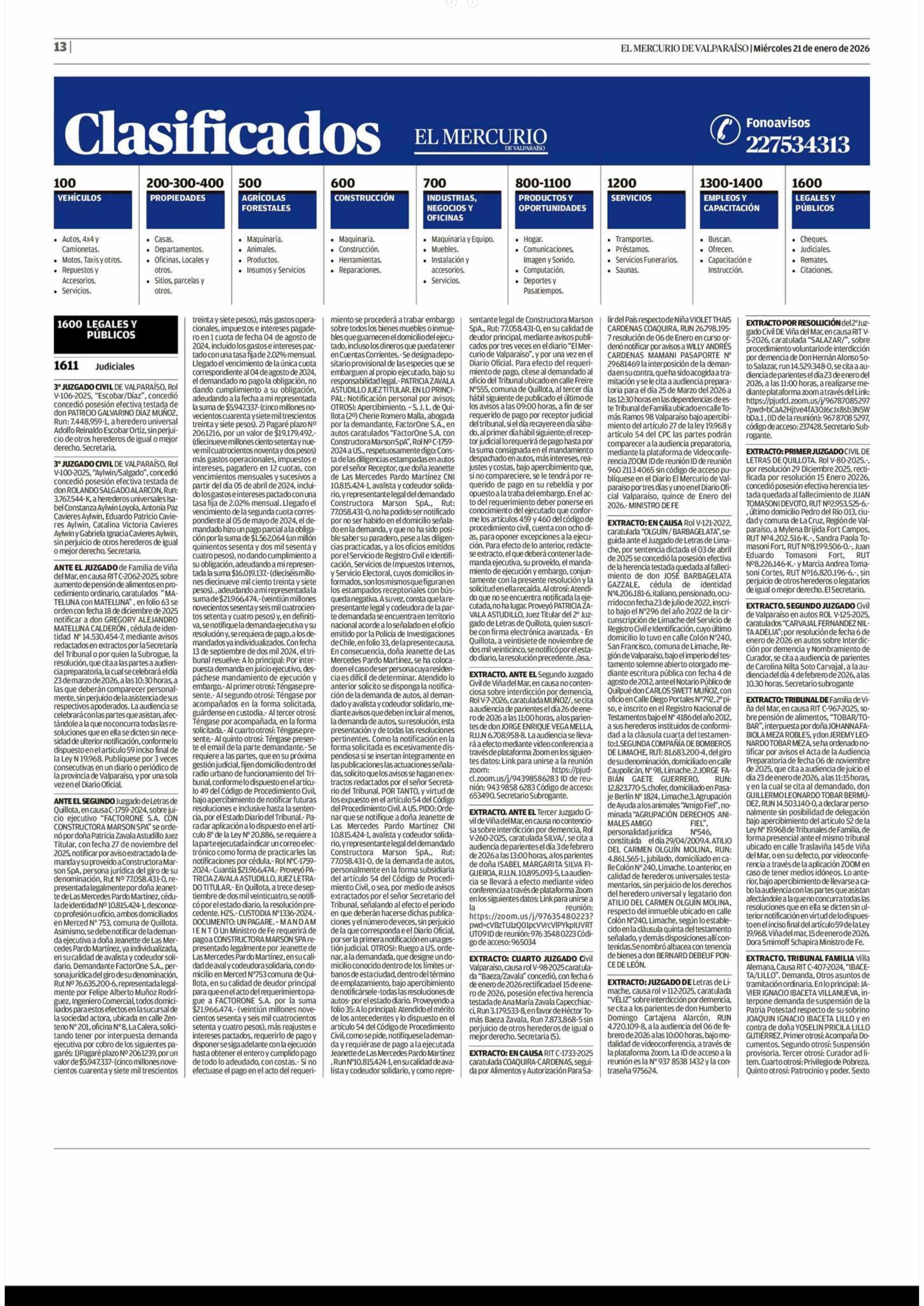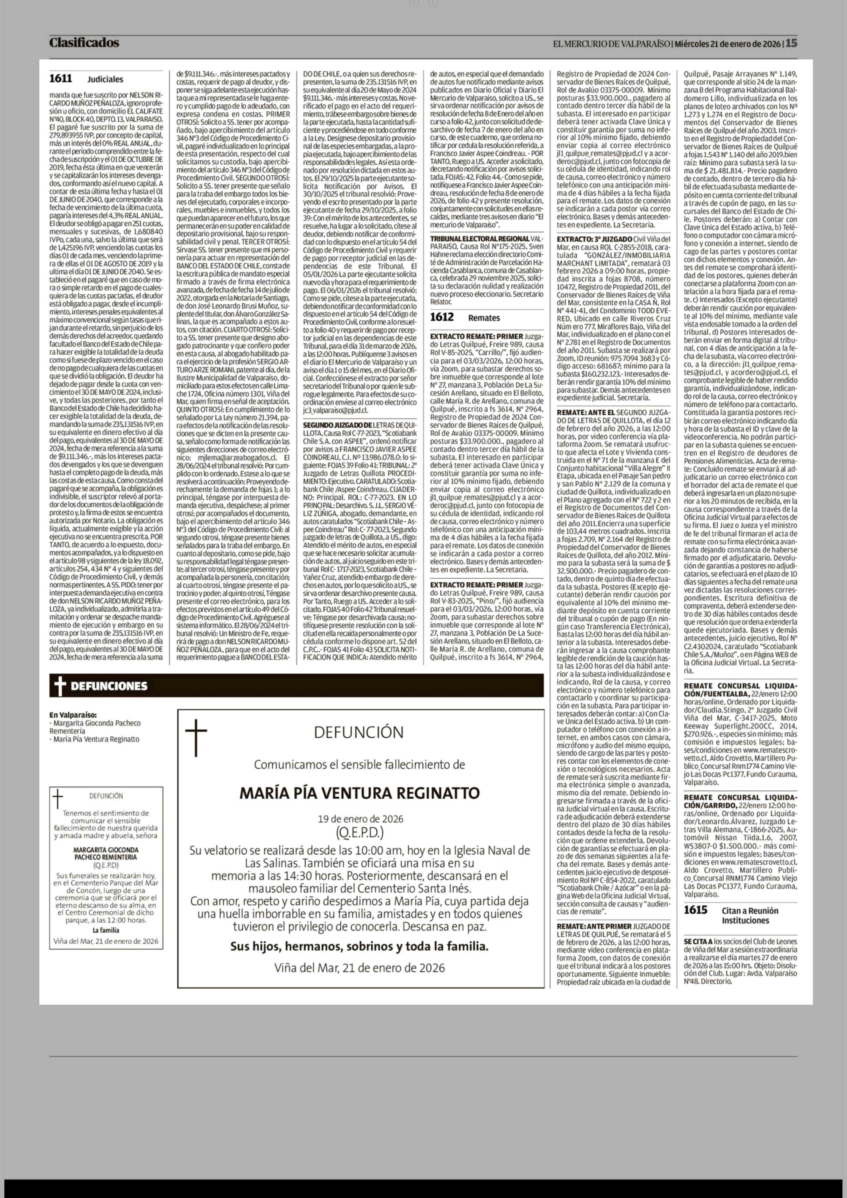 Extractos: Clasificados 21-01-2026 El Mercurio de Valparaíso |