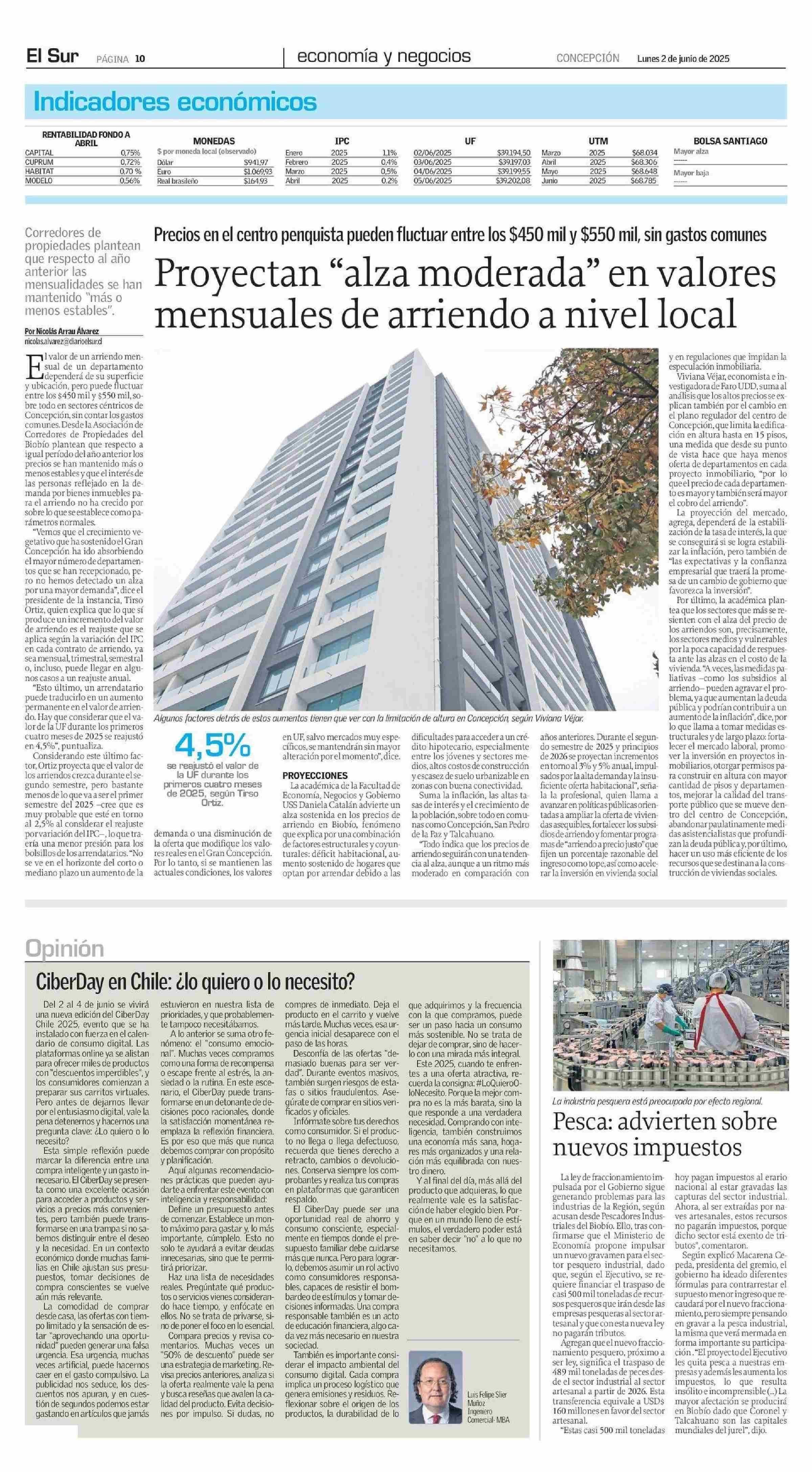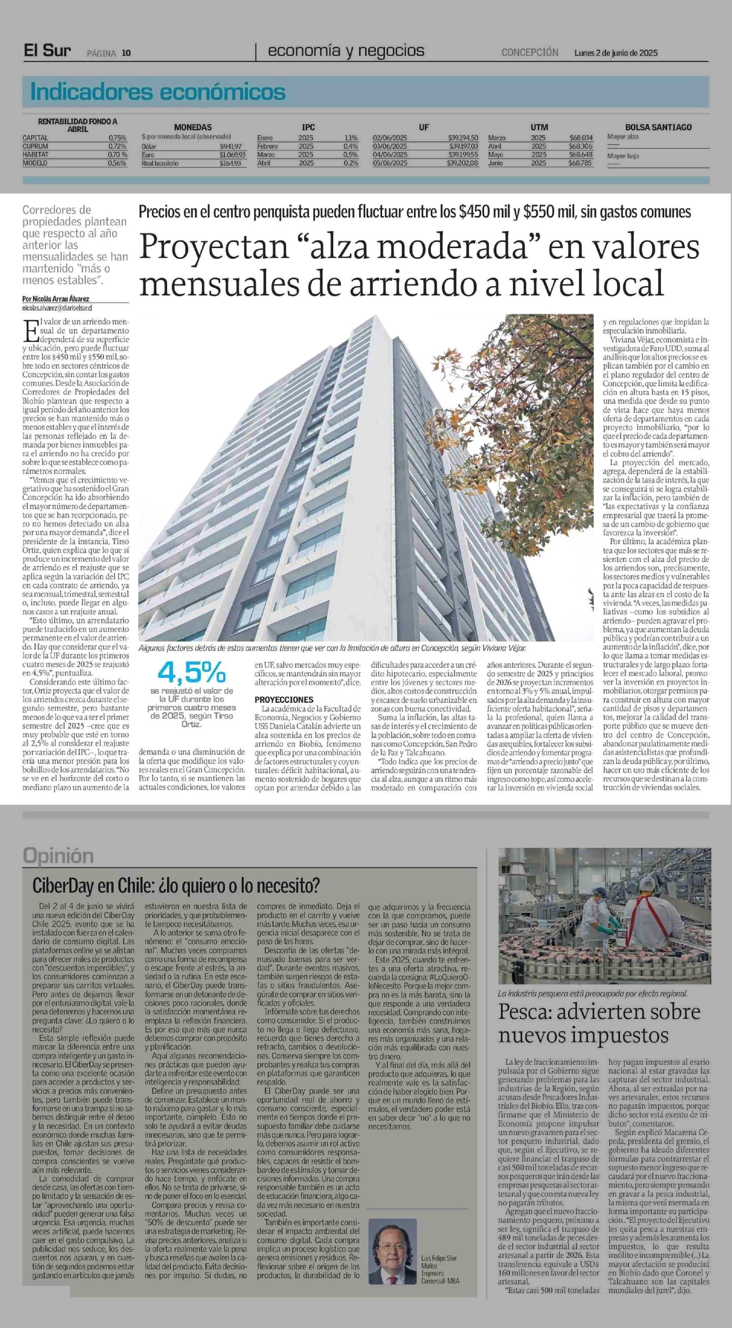 Proyectan “alza moderada” en valores mensuales de arriendo a nivel local 02-06-2025 El Sur |
