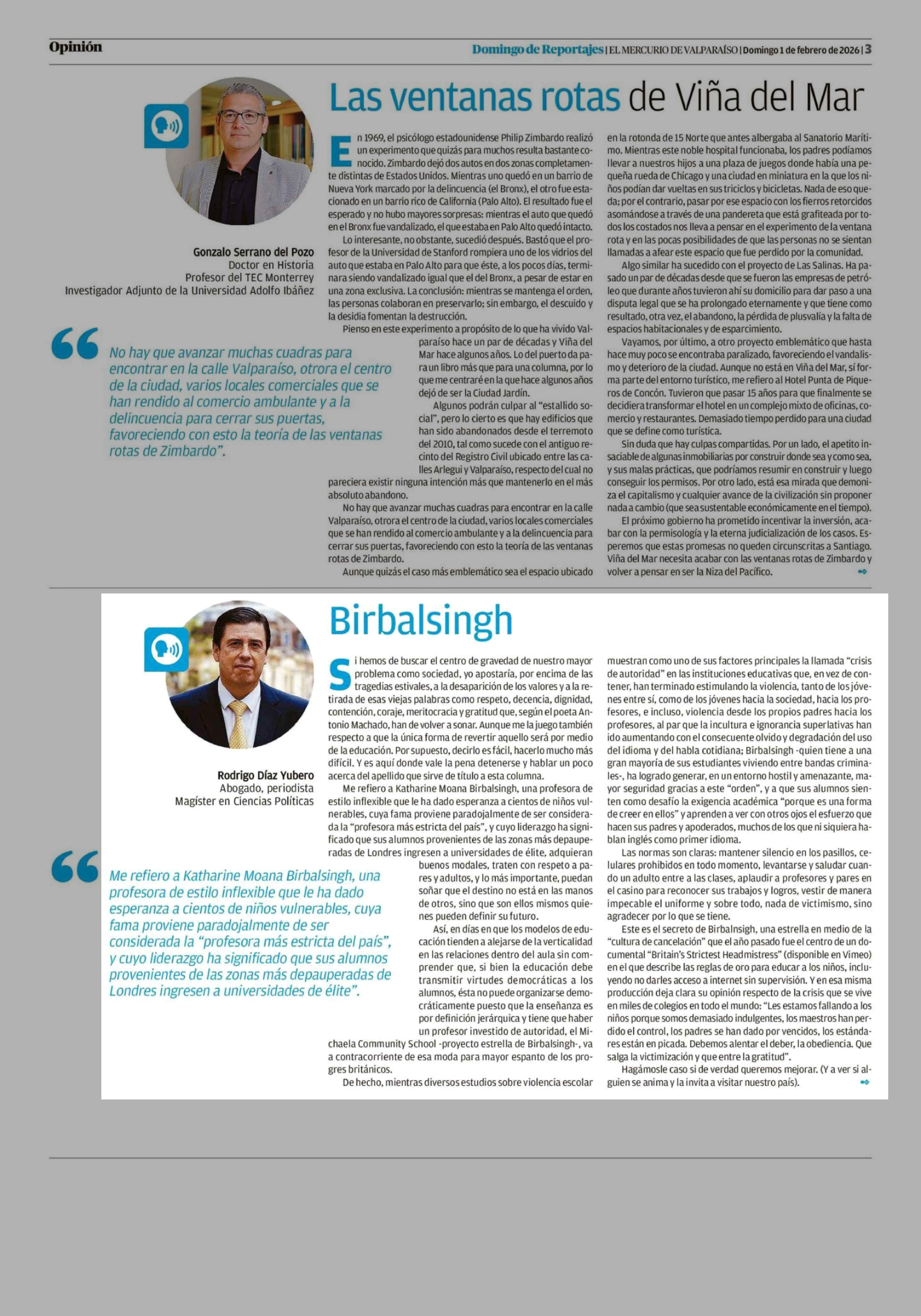 Columnas de Opinión: Birbalsingh 01-02-2026 El Mercurio de Valparaíso |